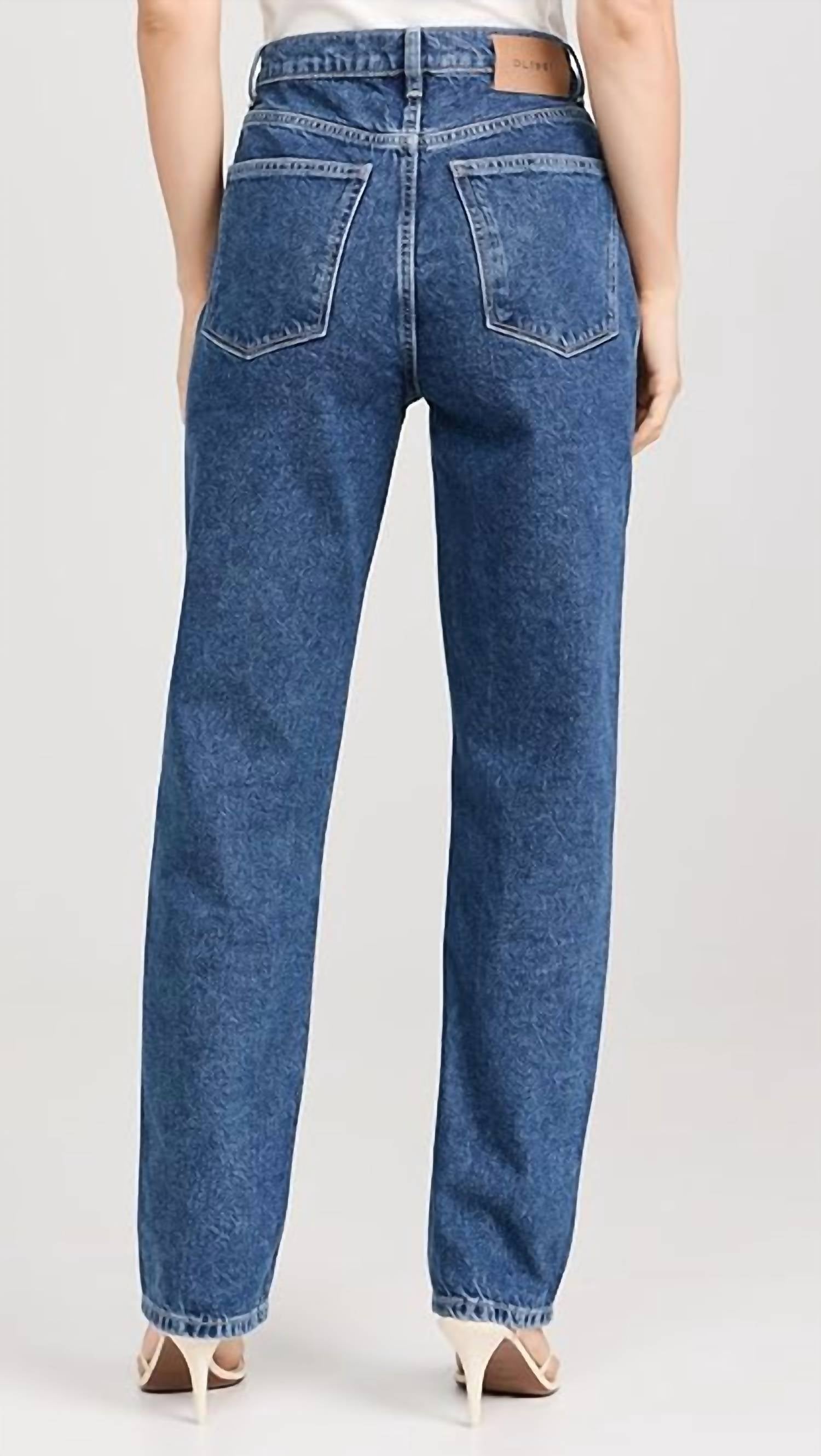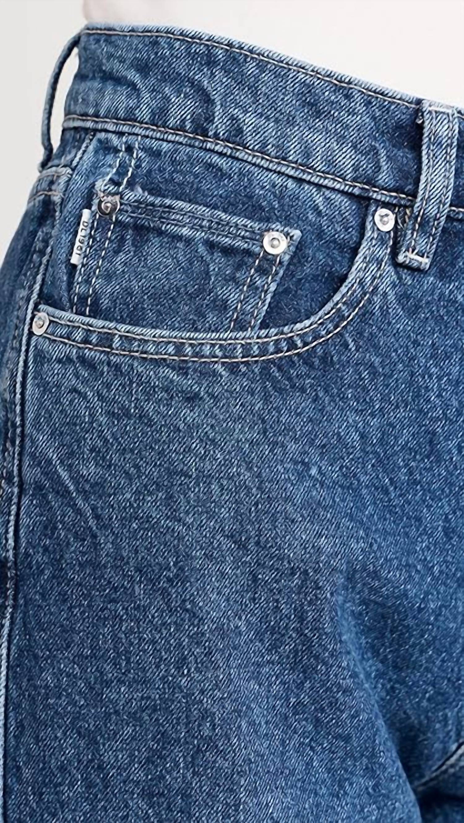 Runs true to size, Designed with a high rise and a relaxed straight leg. Non-stretch denim will soften and give with wear.