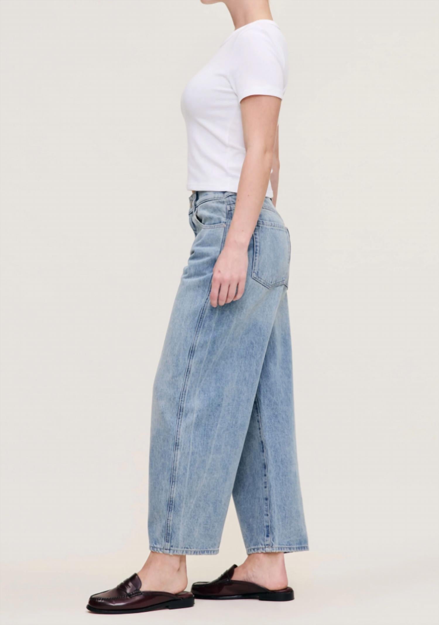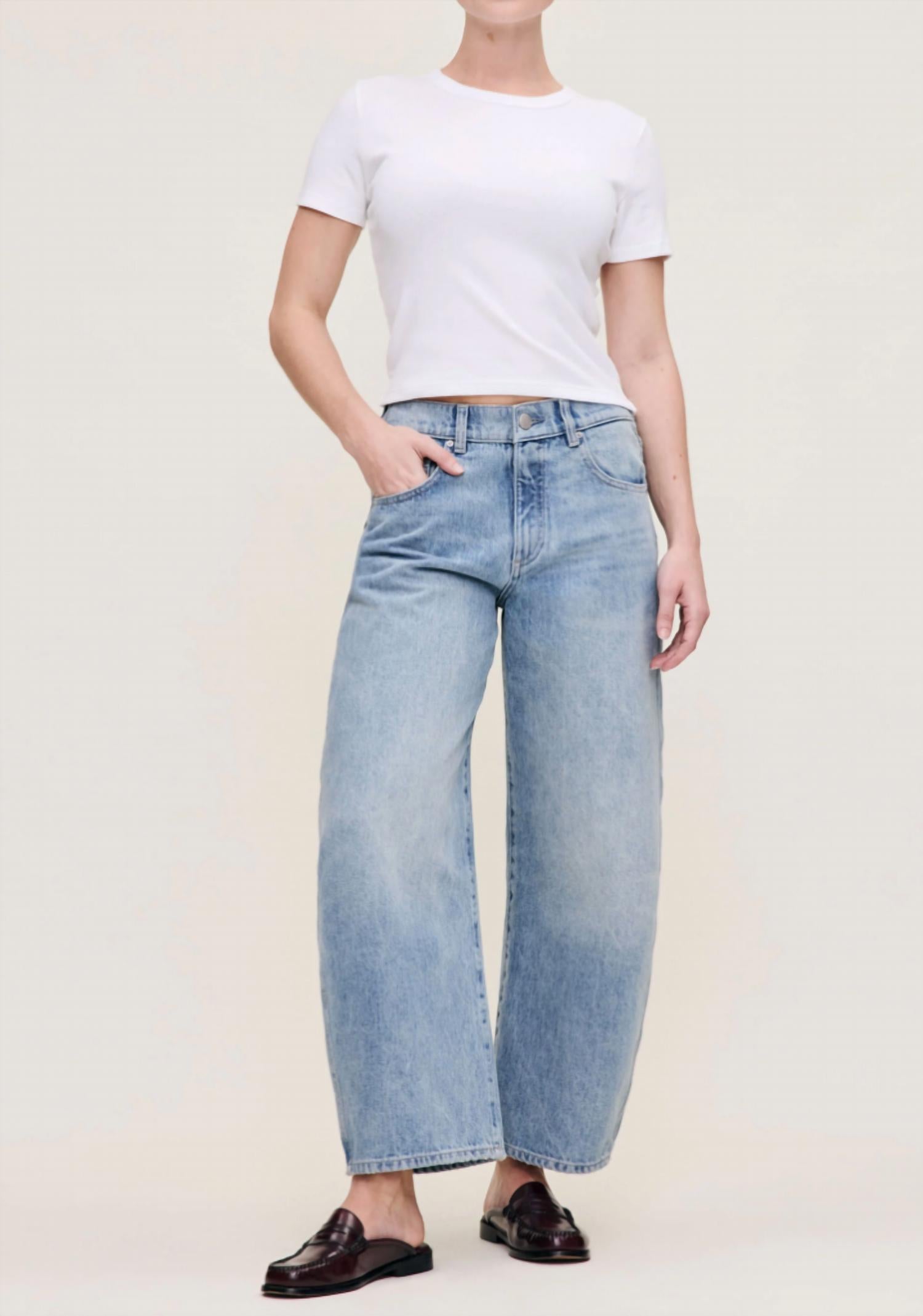 Pair these wide leg jeans with mules, slides or your favorite strappy sandals. Embrace a laid-back vibe with the Women's Taylor Ultra Relaxed Barrel Jean by DL1961 - Women's, featuring an ultra high-rise fit and a wide leg style. The jeans come in a classic Vintage Petite solid color with a light wash, perfect for summer streetwear and vacation occasions. Tailored with a 25" inseam, this classic fit design includes functional pockets and a convenient zip closure. Designed with a focus on comfort, these jeans align with a relaxed, everyday look.