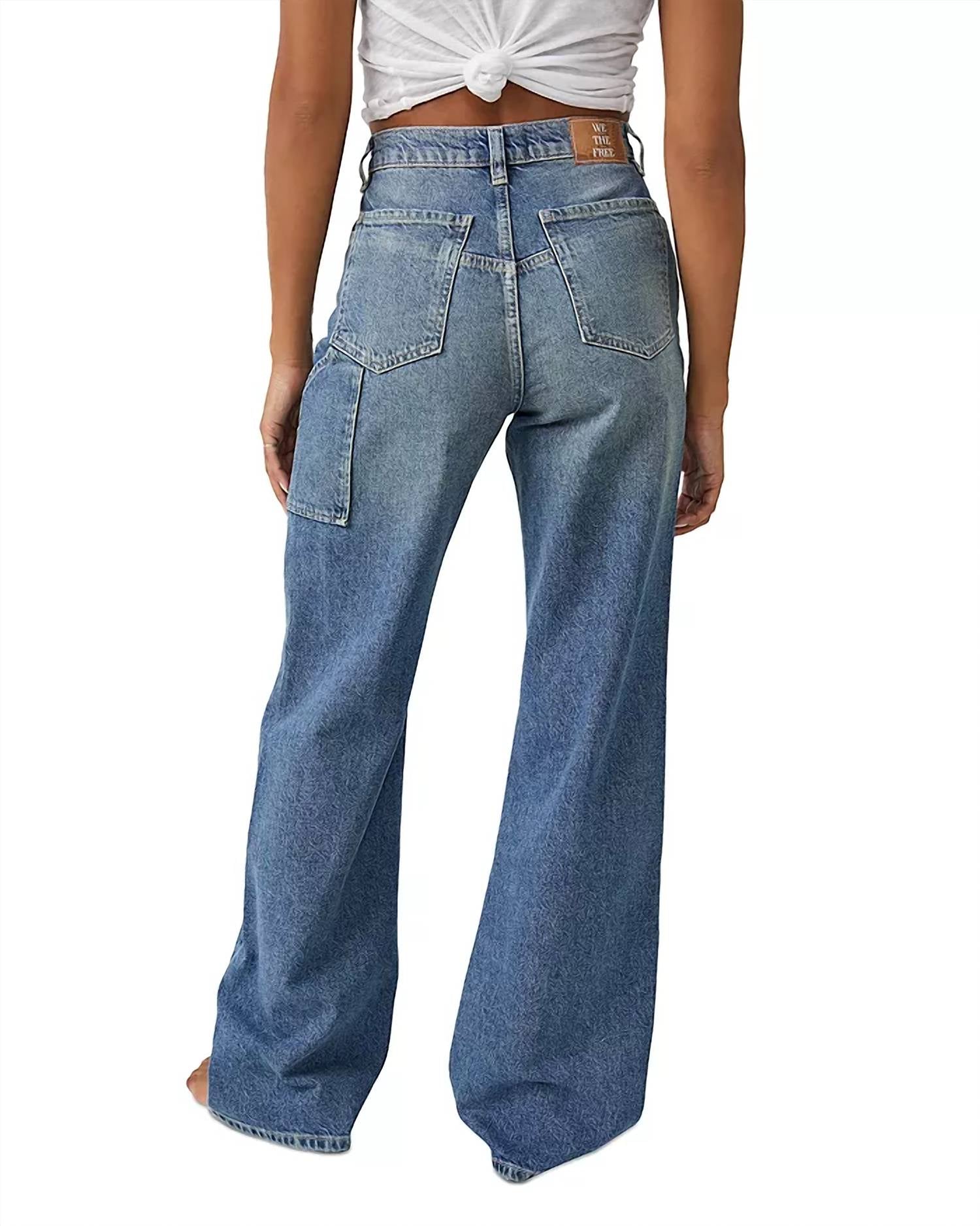 Fit to perfection, we love these high-waist jeans and you will too. Introducing the Tinsley Baggy High-rise Jeans by Free People, perfect for any summer music festival and beyond. These high-rise jeans in Hazey Blue offer a relaxed fit with a straight leg design, featuring a 12" rise and a long 33" inseam. Crafted from a durable blend of 97% polyester and 3% elastane, they come with a classic button closure and functional five-pocket design to keep essentials on hand. Made in Turkey, these jeans are machine washable for easy care, ensuring they remain a staple in your wardrobe. Model is 5'10" with measurements of 33.5" bust, 23.5" waist, and 34.5" hips, and is wearing a size 26.