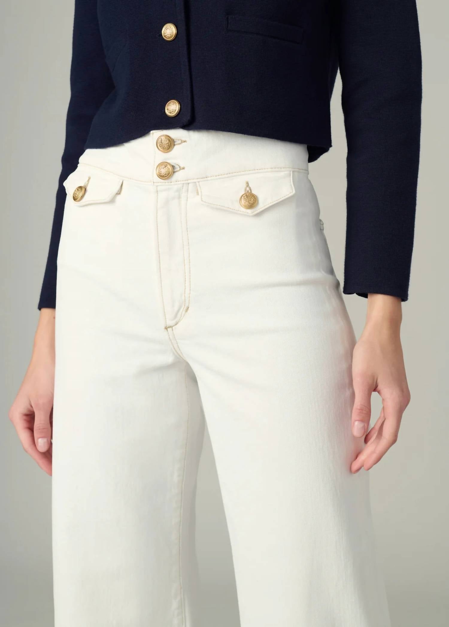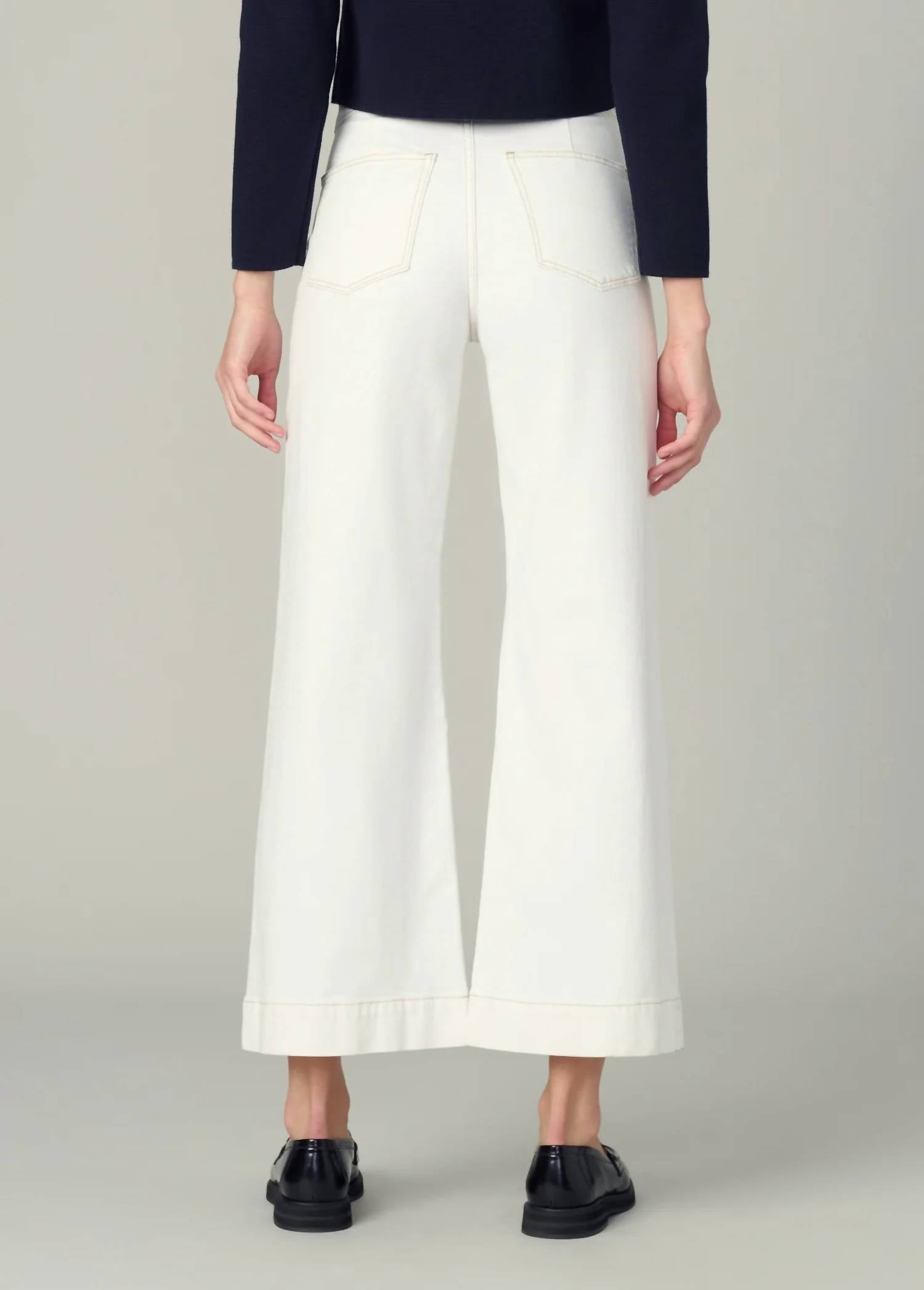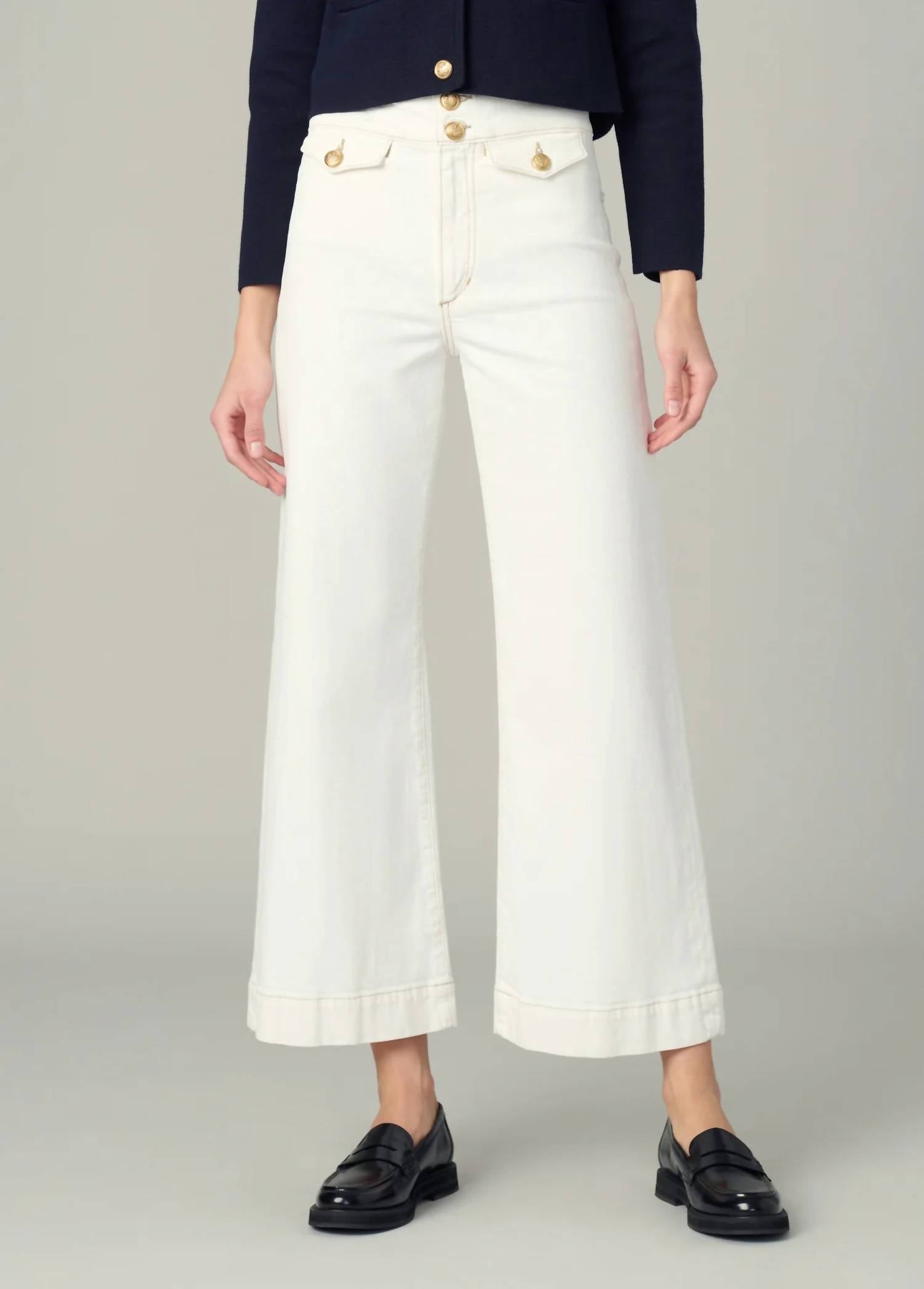 Just as cute as they are comfortable. Meet the Ellia Wide Leg Ankle Jeans by Joe's Jeans, designed for the fashion-forward woman in the classic 'Milk' color. These high-rise jeans feature a wide leg with a flattering 11.75" rise and 28" inseam, accompanied by front flap welt pockets with gold novelty buttons and patch back pockets. Crafted from a blend of 63% cotton, 35% lyocell, and 2% elastane, this piece boasts comfort and style with a wide hem and back yoke, secured by a zip fly with a wide two-button waistband. Care: Machine wash. Ideal for a Dinner Party or celebrating New Year's Eve, this pair brings a touch of 90s fashion to your spring wardrobe.