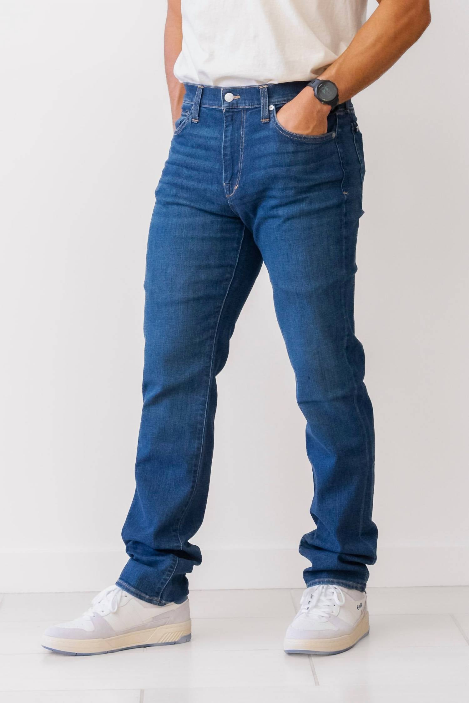 Elevate your casual wardrobe with the Kinetic Brixton by Joe's Jeans in Maz. Crafted from a cotton blend that includes two-way stretch, these medium wash denim jeans offer a straight and narrow fit, ensuring both comfort and style for any occasion. 93% Cotton // 6% Elaston // 1% Elastane. Machine wash cold / tumble dry low.