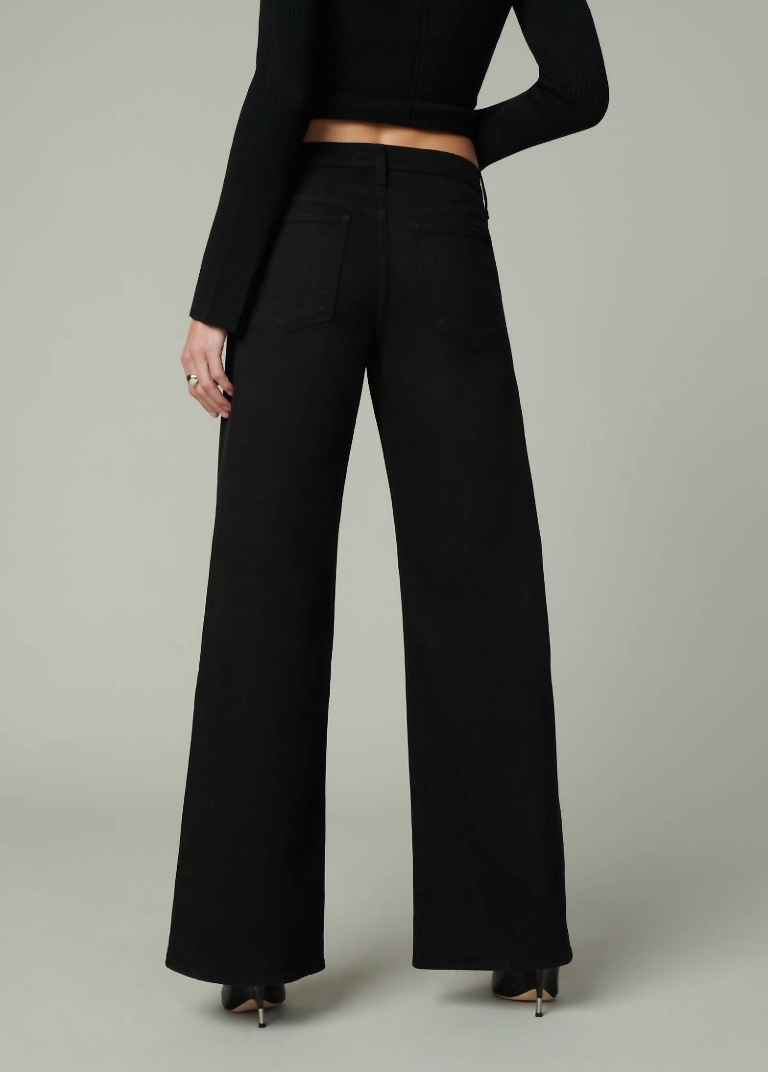 Introducing the Lou Lou Low-rise Jean by Joe's Jeans, a stylish addition to your wardrobe with a relaxed fit and wide leg silhouette. Crafted from a cotton blend of 63% cotton, 35% lyocell, and 2% elastane, these jeans come in a chic dark wash black perfect for summer dinners or elevating your quiet luxury trend outfits. They feature a comfortable low rise of 9 inches with a full-length 32-inch inseam, complemented by a 23-inch leg opening and classic 5-pocket styling. Closure: Zip fly.