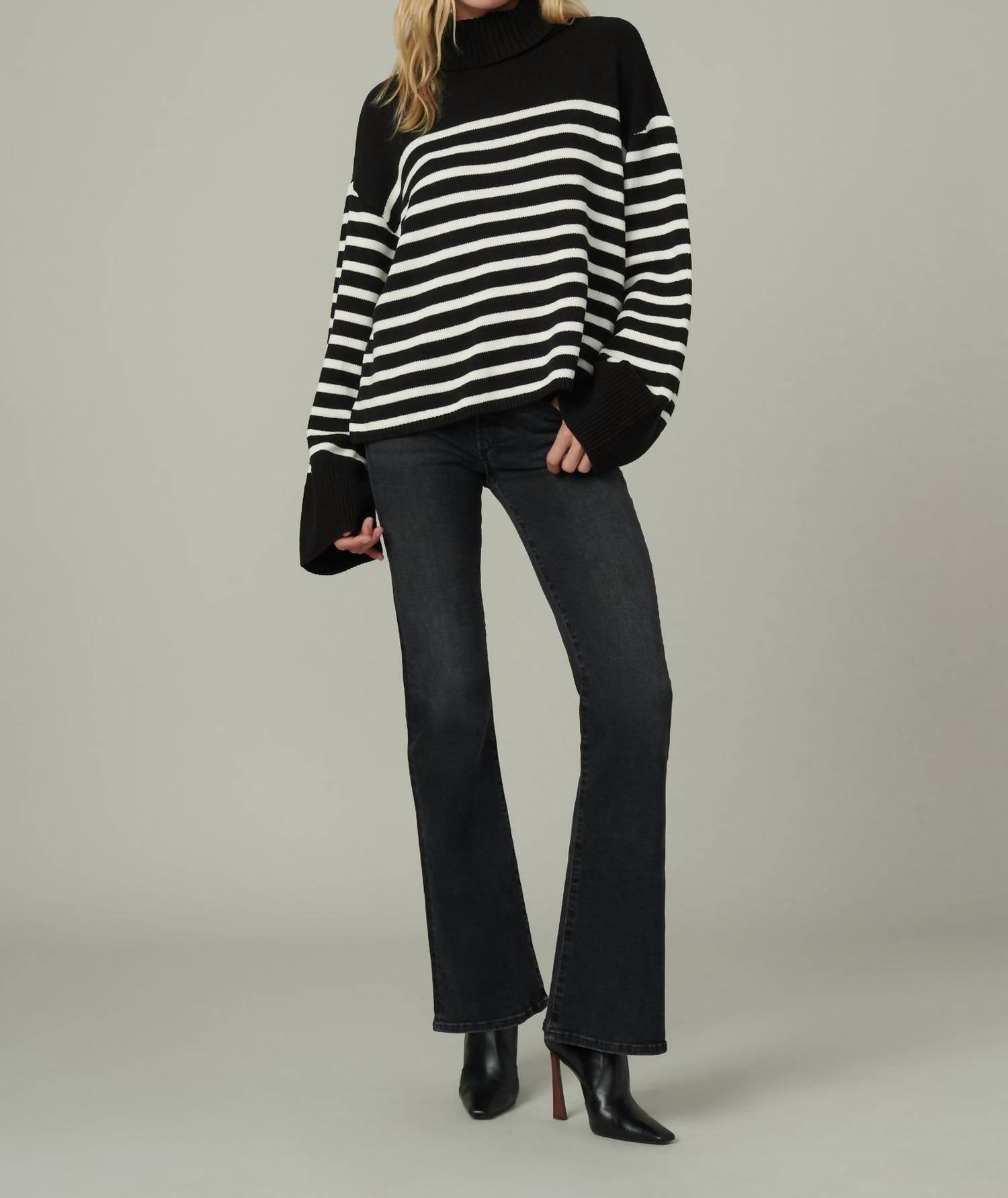 Just as cute as they are comfortable. These bootcut jeans feature a slim fit through the waist and hips, with a relaxed knee that flows into a wide flare for a flattering, elongating silhouette. Designed with a high rise of 10", they include a zip fly and classic 5-pocket styling. The 22" leg opening and 34" inseam offer full-length coverage, while the blend of 80% cotton, 18% lyocell, and 2% elastane ensures comfort, stretch, and structure.