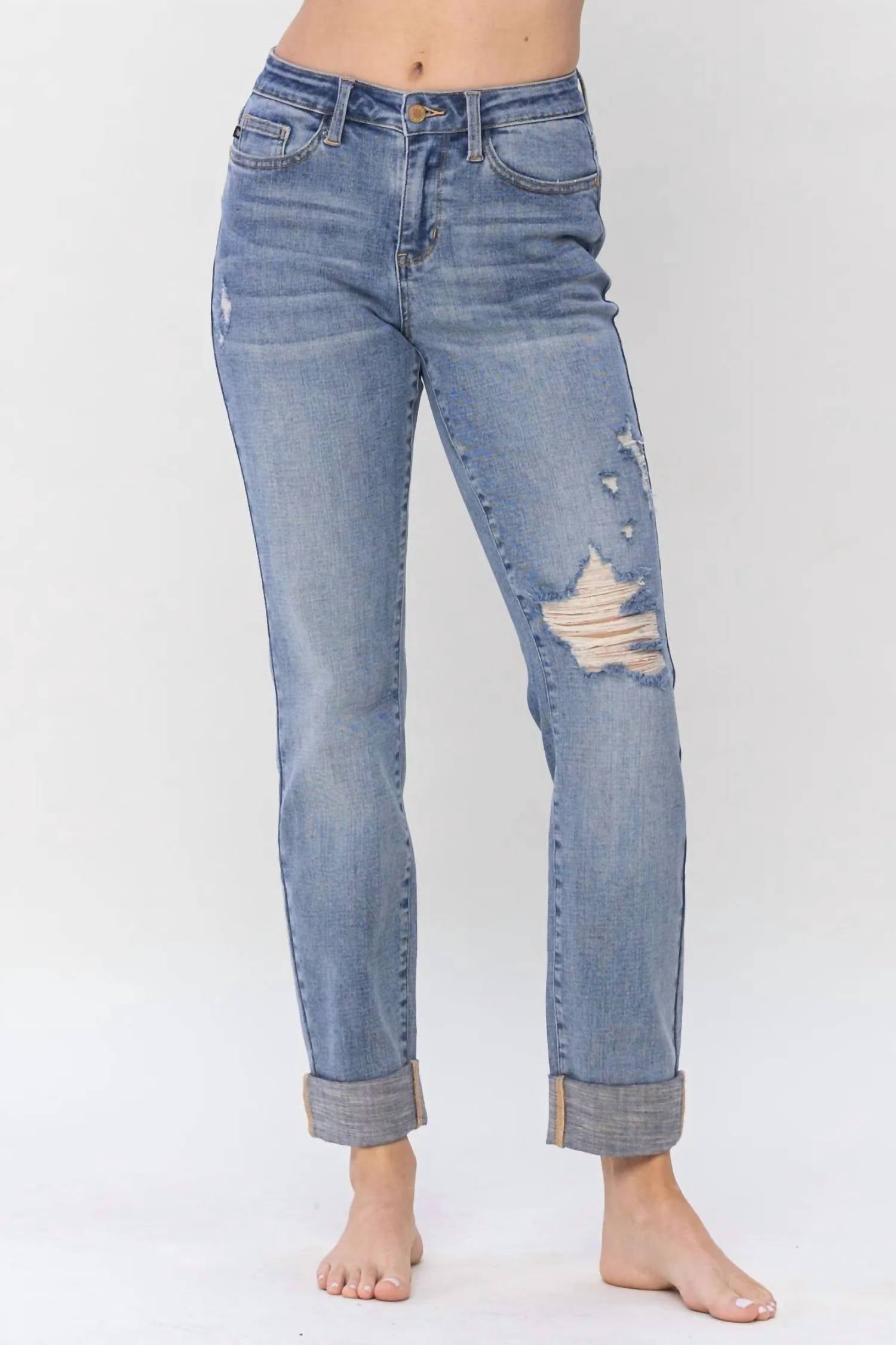 Judy Blue - Destroyed Knee & Cuffed Boyfriend Jeans