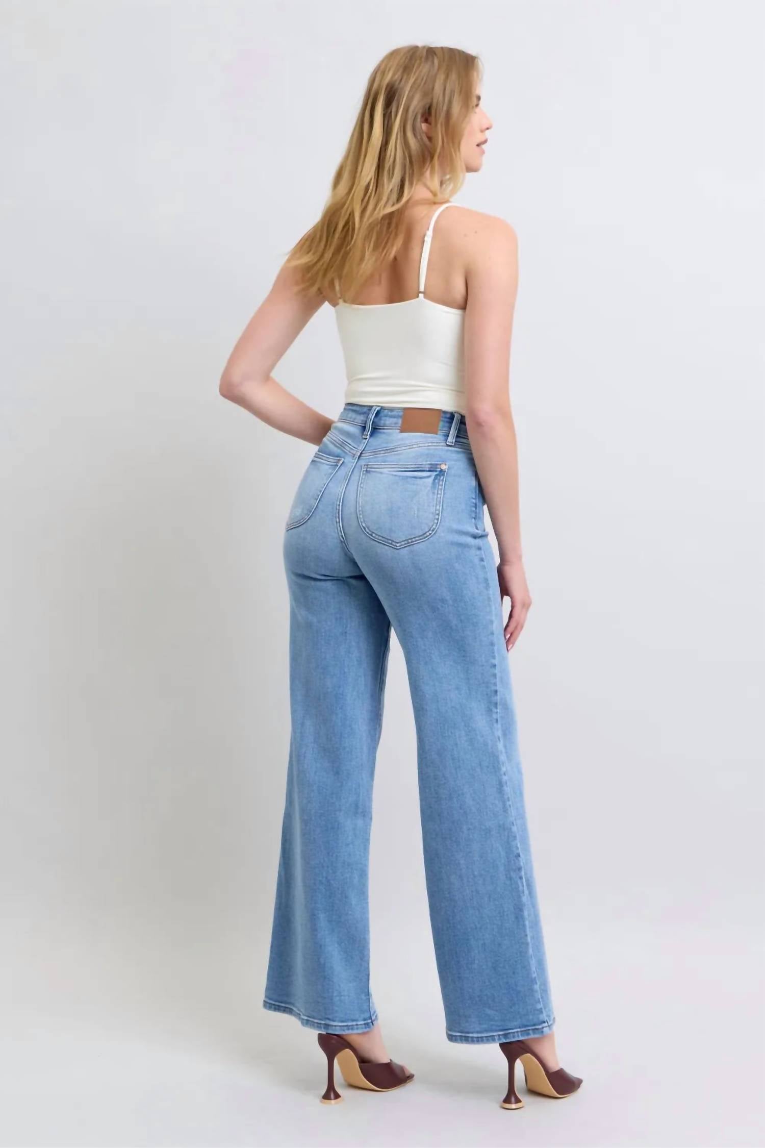Just as cute as they are comfortable. Step out in style with Judy Blue's Full Size Wide Leg Jeans With Pockets, perfect for a chic travel-ready look. Crafted from a durable cotton blend, these medium wash jeans offer a solid pattern and fashionable wide-leg cut. Highlighting a high-rise waist and button closure, they feature functional pockets for added convenience. Made in Vietnam, these jeans provide a moderate stretch and are easy to care for with machine wash and tumble dry low instructions. Ideal for spring outings, pair them with your favorite blouse for a standout ensemble. Available in sizes with a consistent inseam of 30 inches.