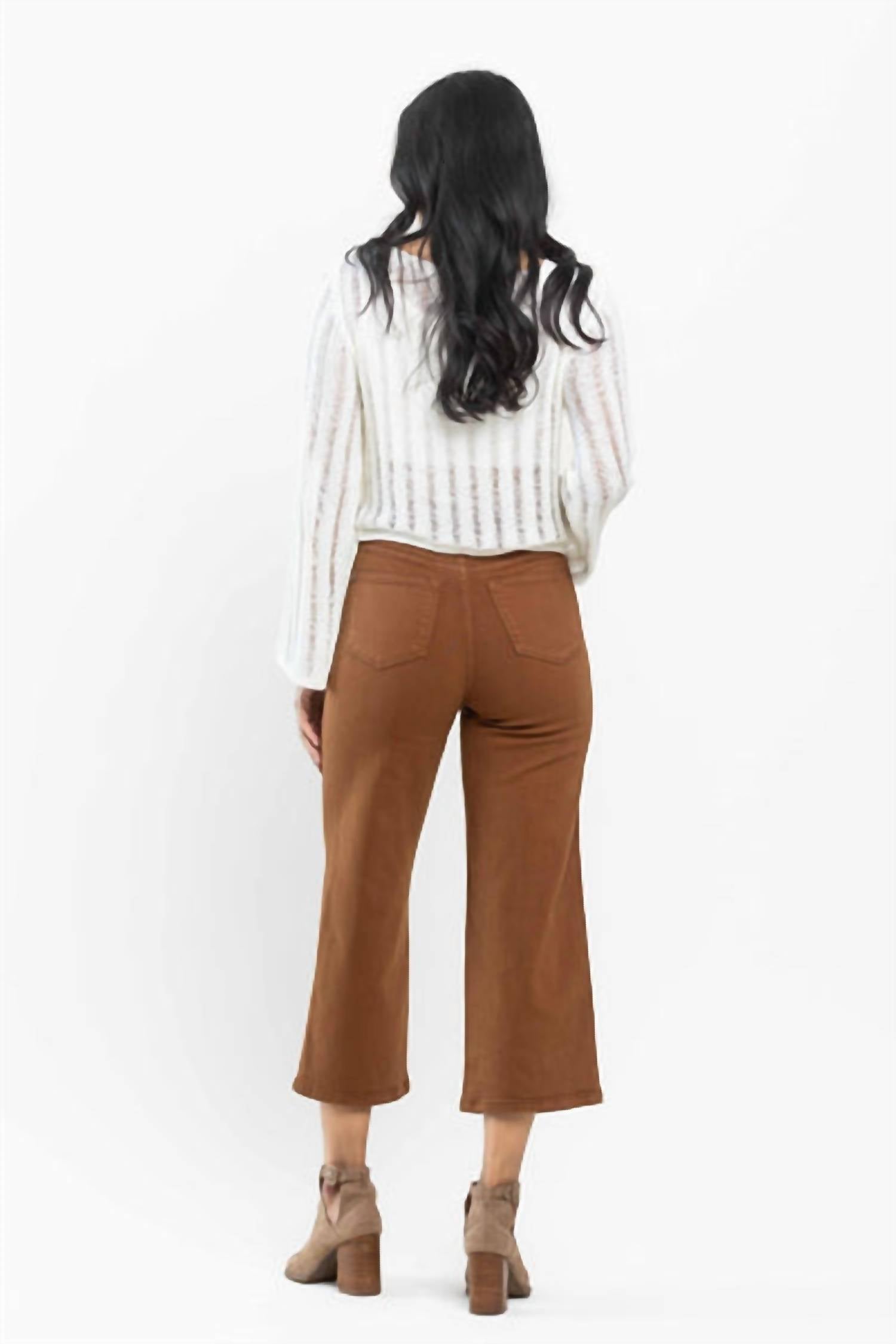 Introducing the High Rise Wide Leg Crop Jeans by Judy Blue, a stylish addition to any wardrobe with its eye-catching teal color. These jeans offer a comfortable fit with their relaxed wide leg design and feature a flattering high waist, 12.25 inches in rise, providing added tummy control. Made from a blend of 93% cotton, 6% polyester, and 1% spandex, these jeans ensure both comfort and flexibility. Crafted without distressing and featuring a button closure, they are machine washable for easy care. Inseam measures 24.25 inches. Remember to size down for the perfect Judy Blue fit.