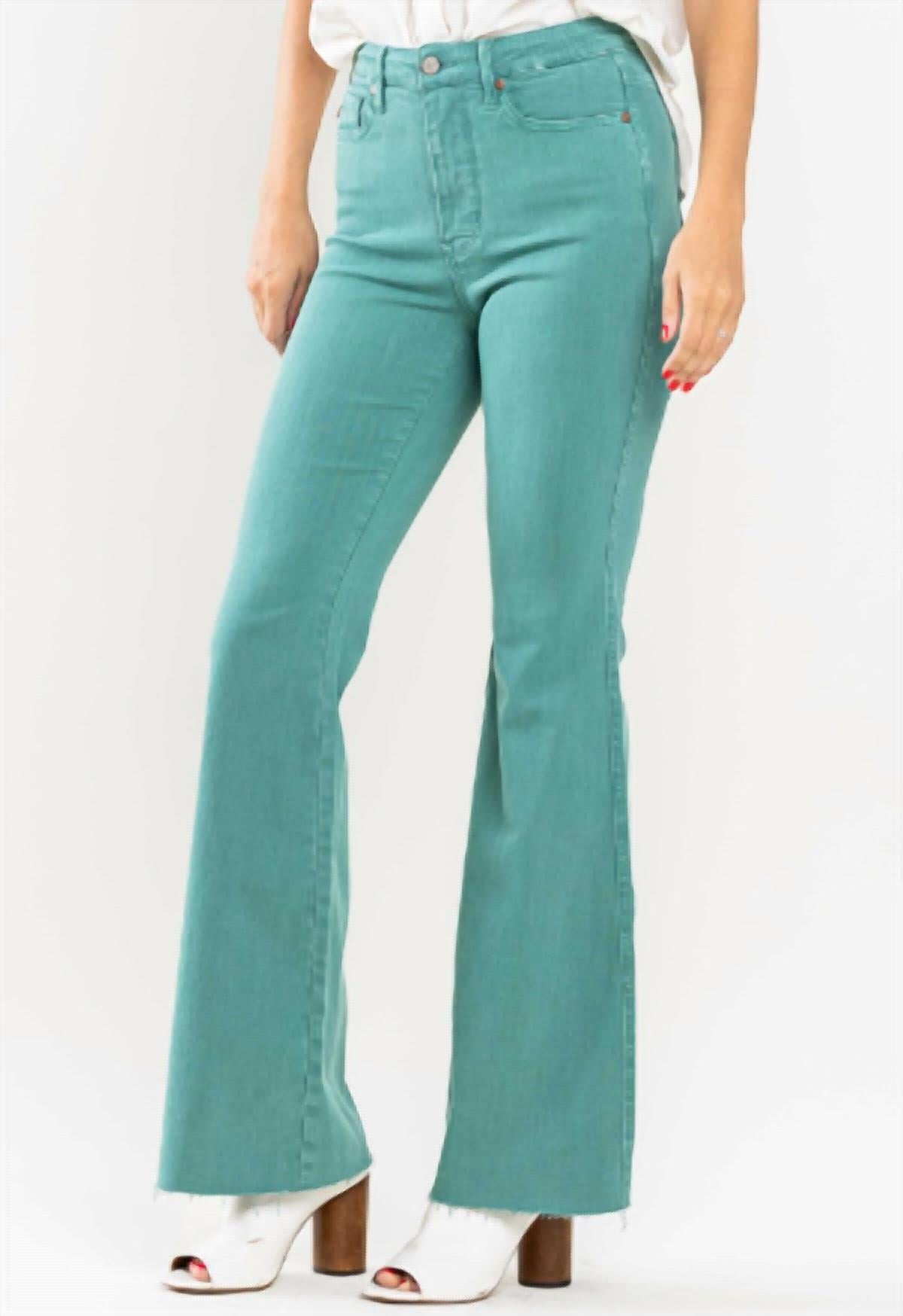 Pair these wide leg jeans with mules, slides or your favorite strappy sandals. Judy Blue Jeans offer the ideal mix of comfort and style, making them your go-to denim for daily wear. Enjoy a fit that flatters and moves with you. HIGH WAIST TUMMY CONTROL TOPAZ DYED FLARE Rise: 11" Inseam: 33" Fabric Content: 93% Cotton / 6% Polyester / 1% Spandex Say hello to all-day comfort with the Judy Blue Jeans 88804. These jeans are made to move with you—featuring soft, stretchy denim that fits just right in all the best places. Whether you're lounging, working, or heading out for the day, these jeans bring a relaxed feel with a flattering silhouette. They’re easy to style, easy to love, and 100% ready for your real-life moments.