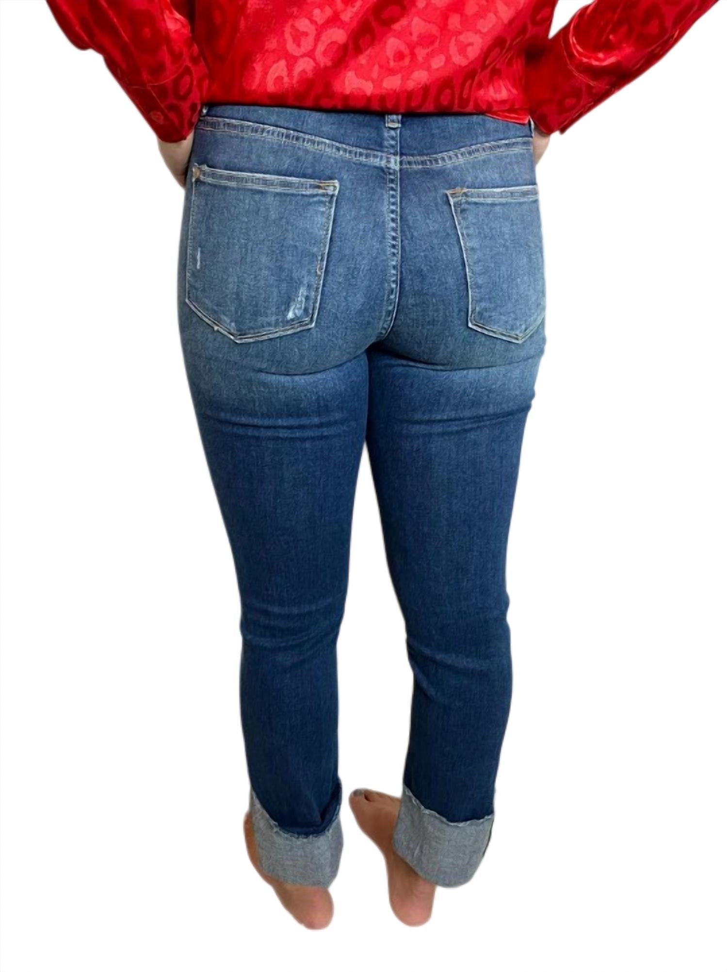 These must-have jeans are fit to perfection. These straight-leg jeans are crafted from premium denim, providing both comfort and style with a mid-rise waist and versatile 4" cuffs. The inseam measures 30" when cuffed, extending to 34" uncuffed, allowing you to customize your look effortlessly. Closure: Button. Ideal for adding a touch of edgy sophistication to your wardrobe, we recommend sizing down one size for a fitted look.