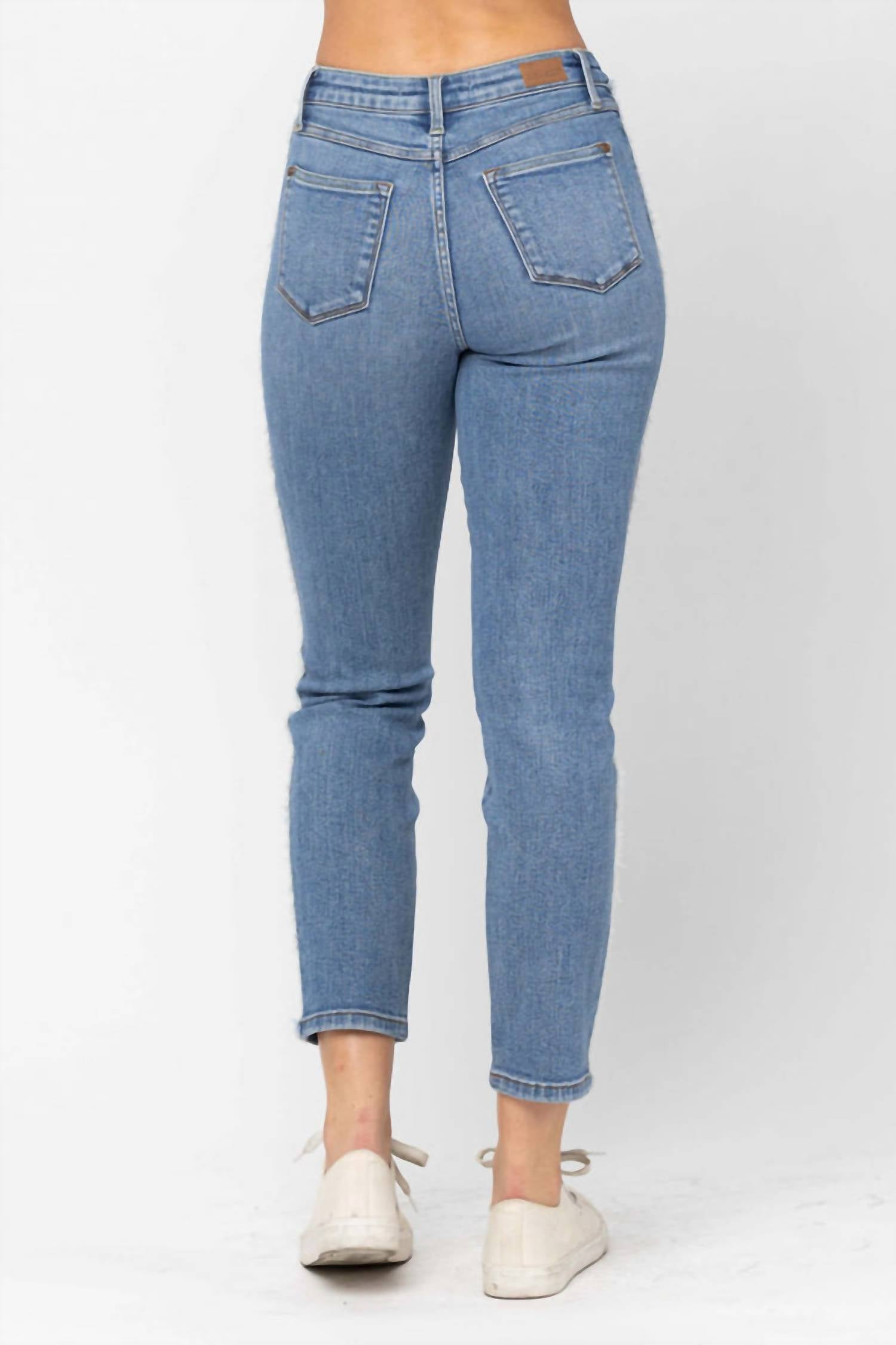 Everyone needs a good pair of skinny jeans and this is a style you'll keep reaching for no matter the season. High Rise Skinny Jeans. Slim Fit. An adorable Fray detail all down the side seam on both legs. 100% Cottom. Machine wash cold. Made in USA.