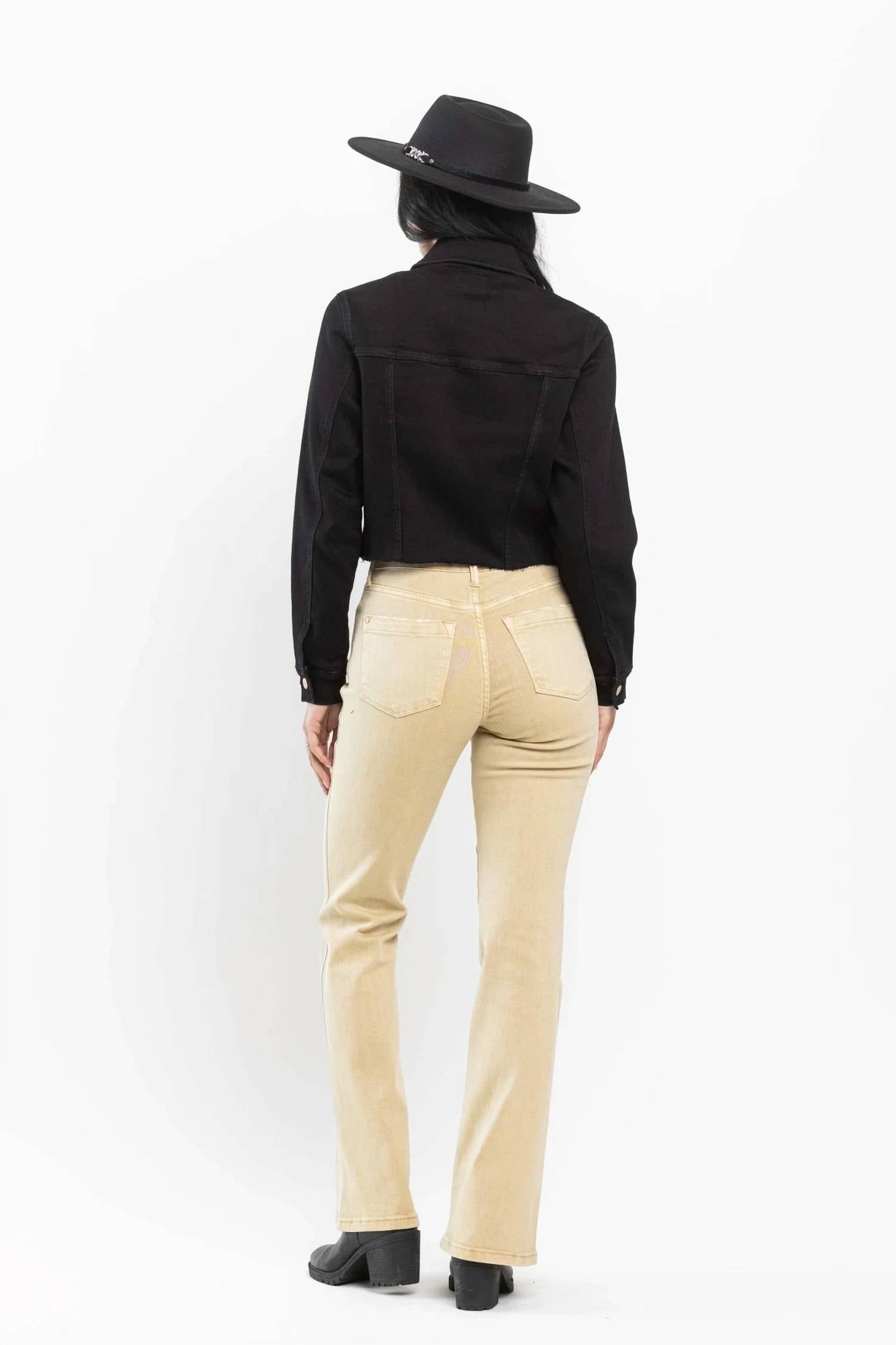 If you're looking for boot-cut, this is the jean for you. These solid-patterned jeans seamlessly blend fashion and functionality with included pockets and a flattering cut. Made in a bootcut style, they offer a sleek silhouette. For care, simply machine wash and remember to lay flat to dry.