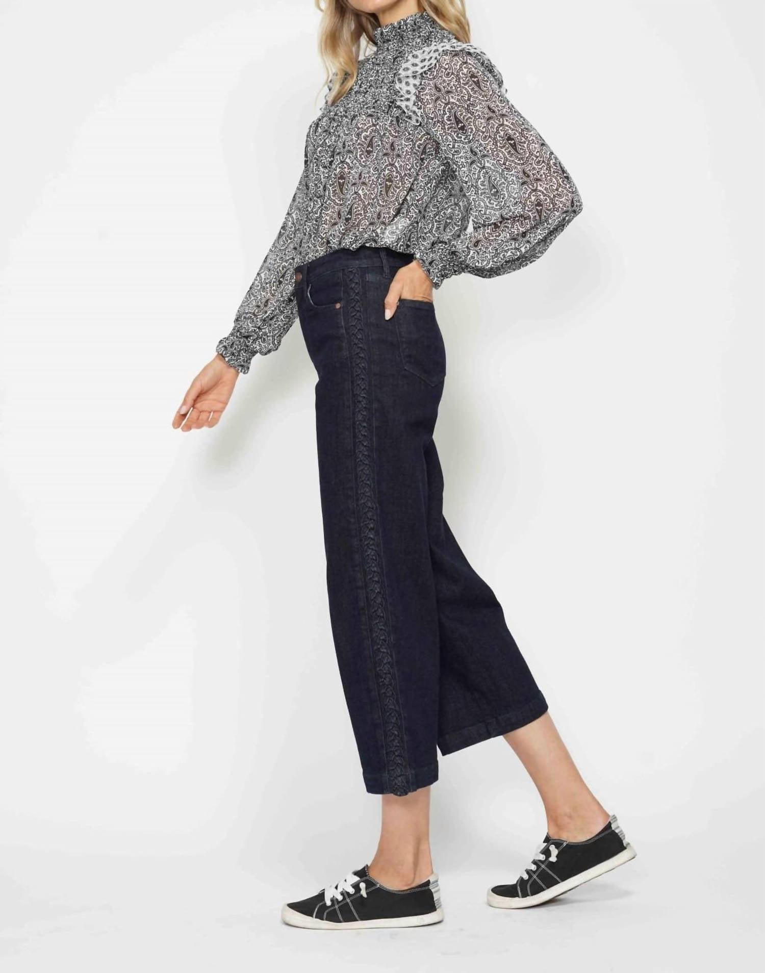 Judy Blue - Wide Leg Braided Side Seam Crop Jeans