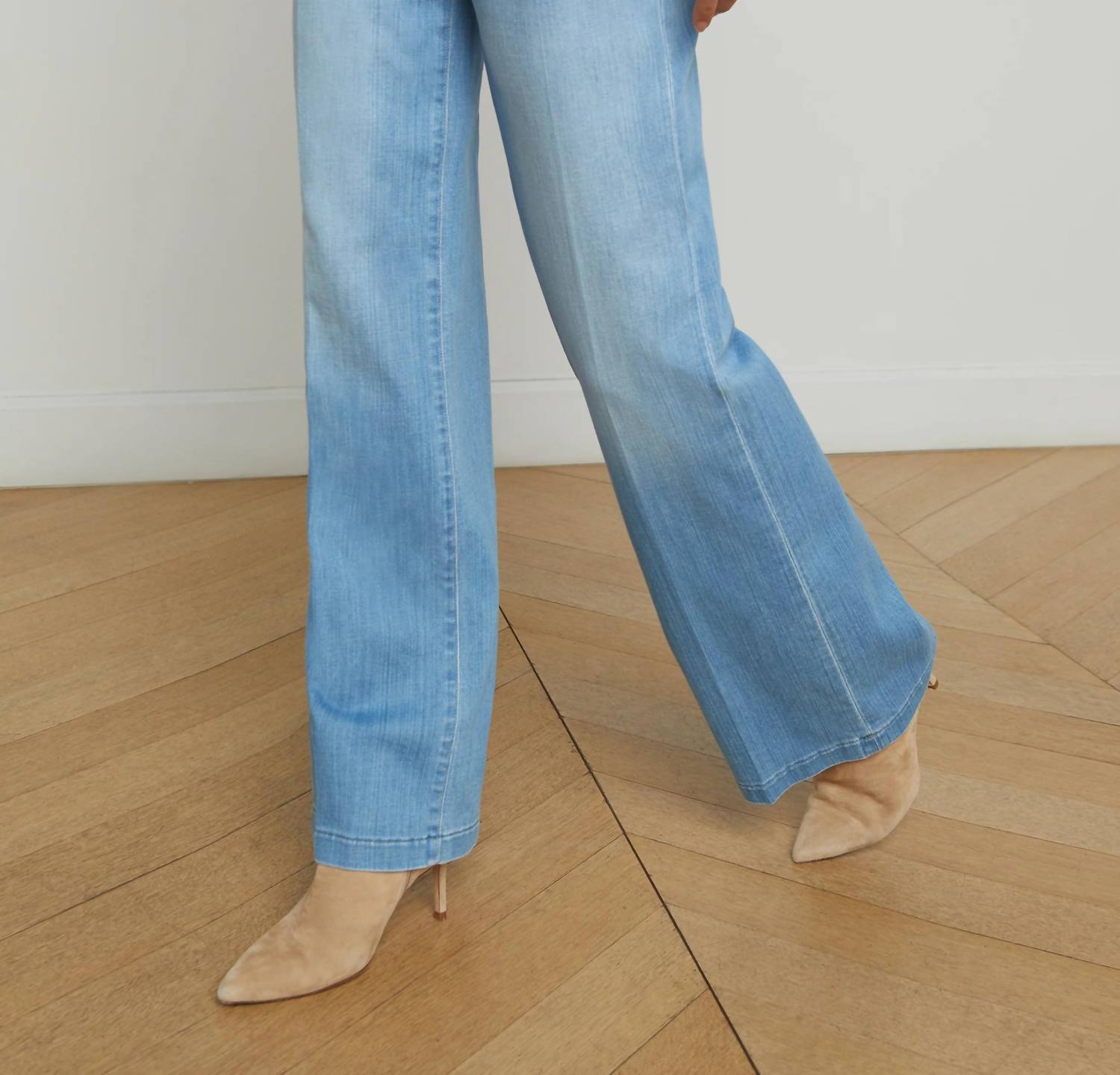 A flattering silhouette that's suprisingly versatile. Introducing the Joanne Low-rise Wide-leg Jeans by L'Agence, a stylish addition in light blue Amherst wash. Crafted from a premium cotton blend with 94% cotton, 5% polyester, and 1% spandex, it features a 32" inseam and a comfortable 8.75" rise. These jeans come with a classic 5-pocket construction and a zip-fly with button closure. Designed for ease, they are machine washable for your convenience.