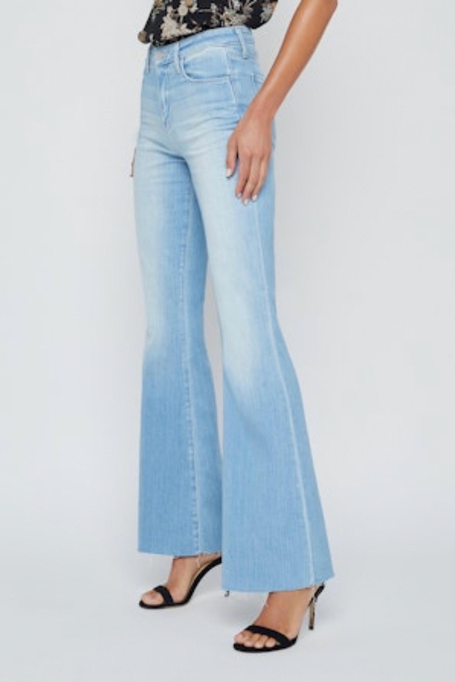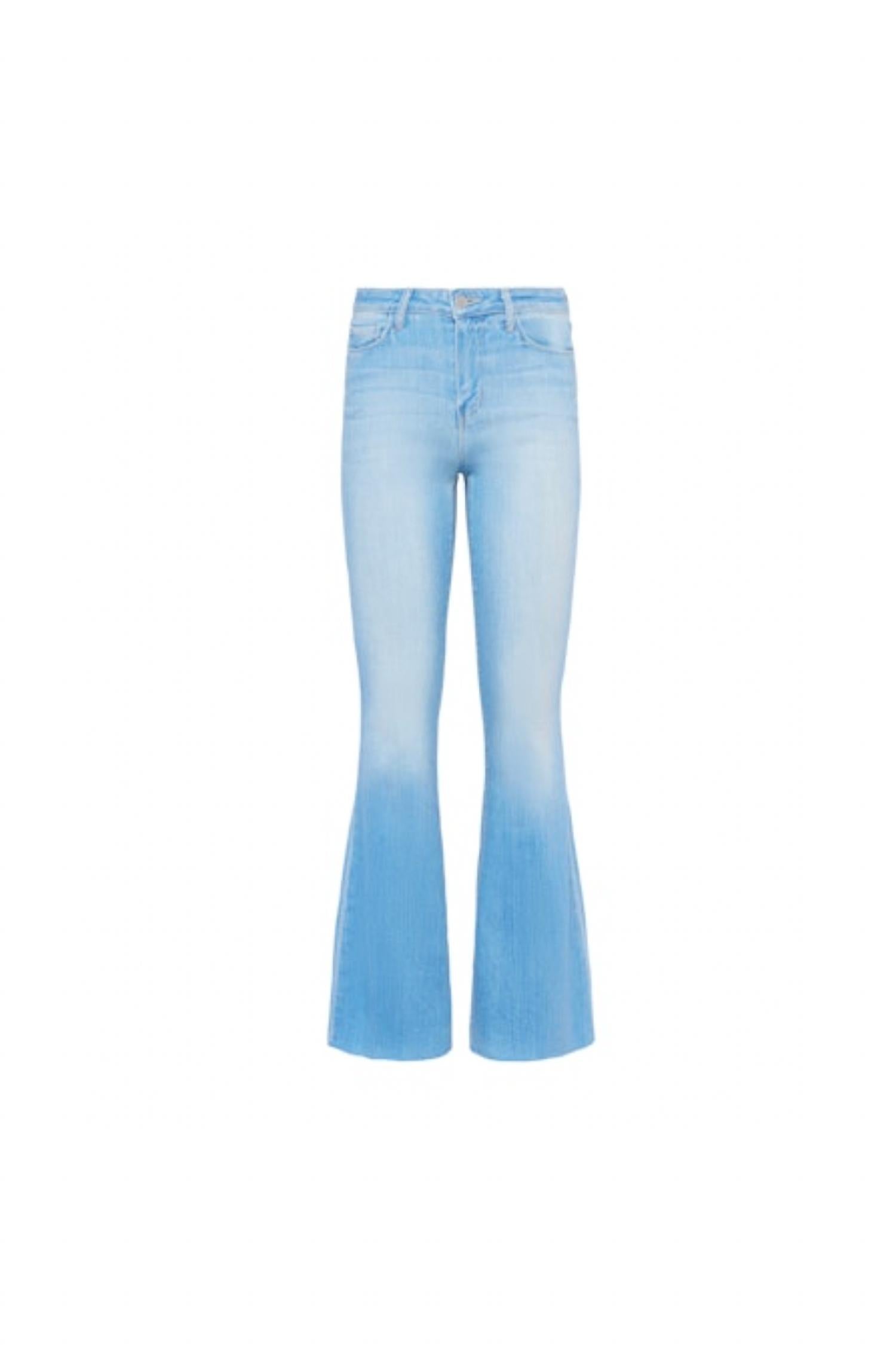 High-waist is here to stay and we especially love this style. Introducing the Sera High Rise Flare Jeans by L'Agence, crafted in Essex, these essential jeans showcase a high-rise, relaxed fit that accentuates your silhouette with a flared leg design. Constructed from a premium stretch cotton blend, they promise comfort and style with a 9.5" rise, 32" inseam, and a 22" leg opening. Composition: 94% Cotton, 5% Polyester, 1% Spandex, with a classic five-pocket construction and a secure button closure. Expertly constructed in the US of imported materials, these jeans capture the essence of the Y2K trend. Model's measurements: 5'8" height, 32" bust, 23" waist, 34" hips, wearing size 25.