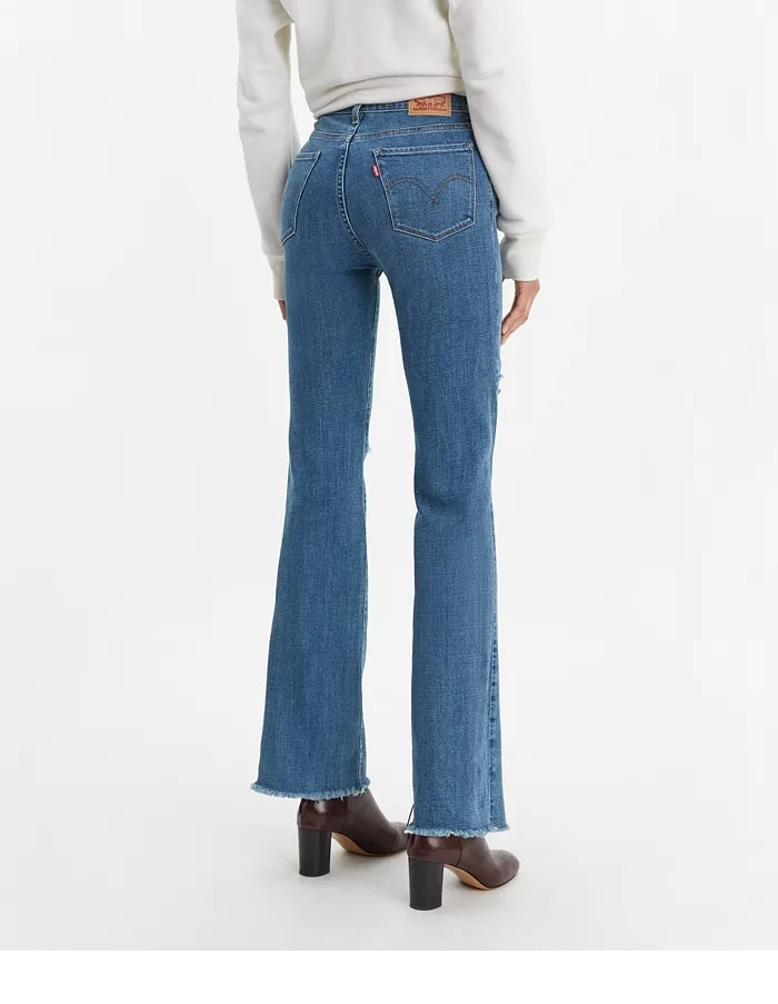 Available in approx. inseam: 30" (R); 32" (L)|High rise: approx. 12"; leg opening: 17"|Zipper and button closure at front; belt loops|Destructed details; raw hems|Cotton/polyester/elastane|Machine washable