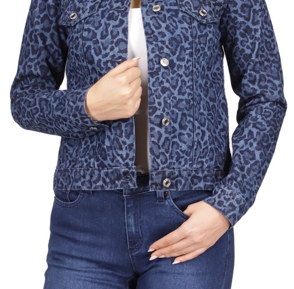 Michael Kors Women's Cotton Leopard Print Jean Jacket Blue Size Small