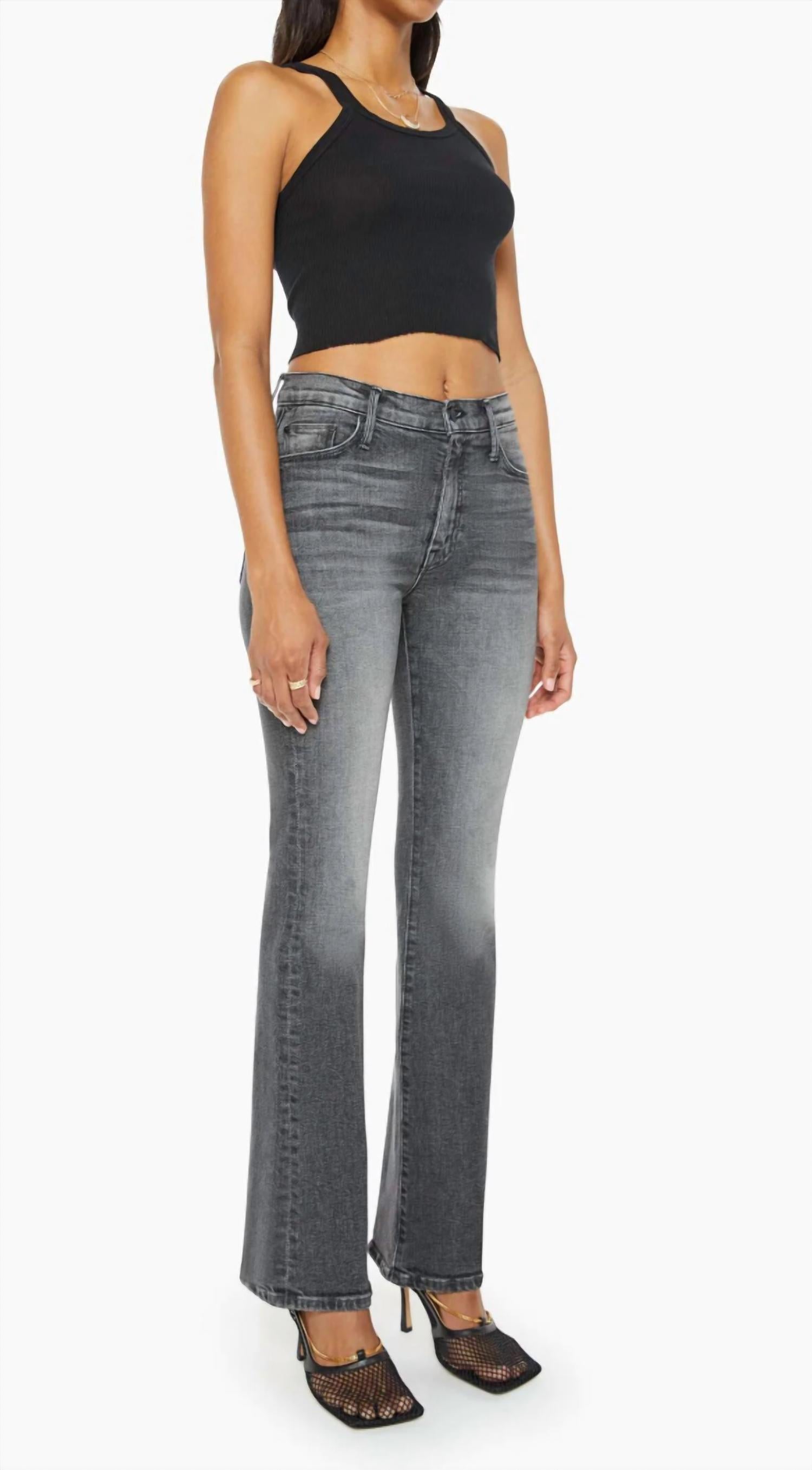 Pair these wide leg jeans with mules, slides or your favorite strappy sandals. Introducing The Weekender Flare Jean by Mother in the Wanted colorway, a cult-favorite for those on the go. These women's flare jeans feature a mid-rise with a relaxed fit and a 31-inch inseam, offering style and comfort in a solid, faded dark grey wash. Made from semi-rigid denim, they highlight a flared leg and a button closure, complete with practical pockets for added convenience. Proudly made in Los Angeles, these jeans are easy to maintain with machine wash and tumble dry care instructions.
