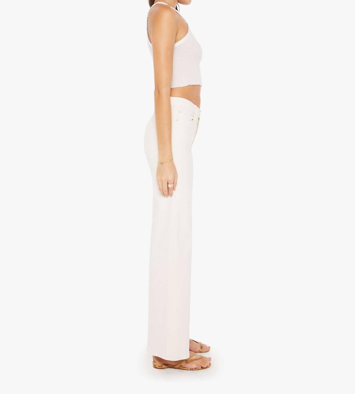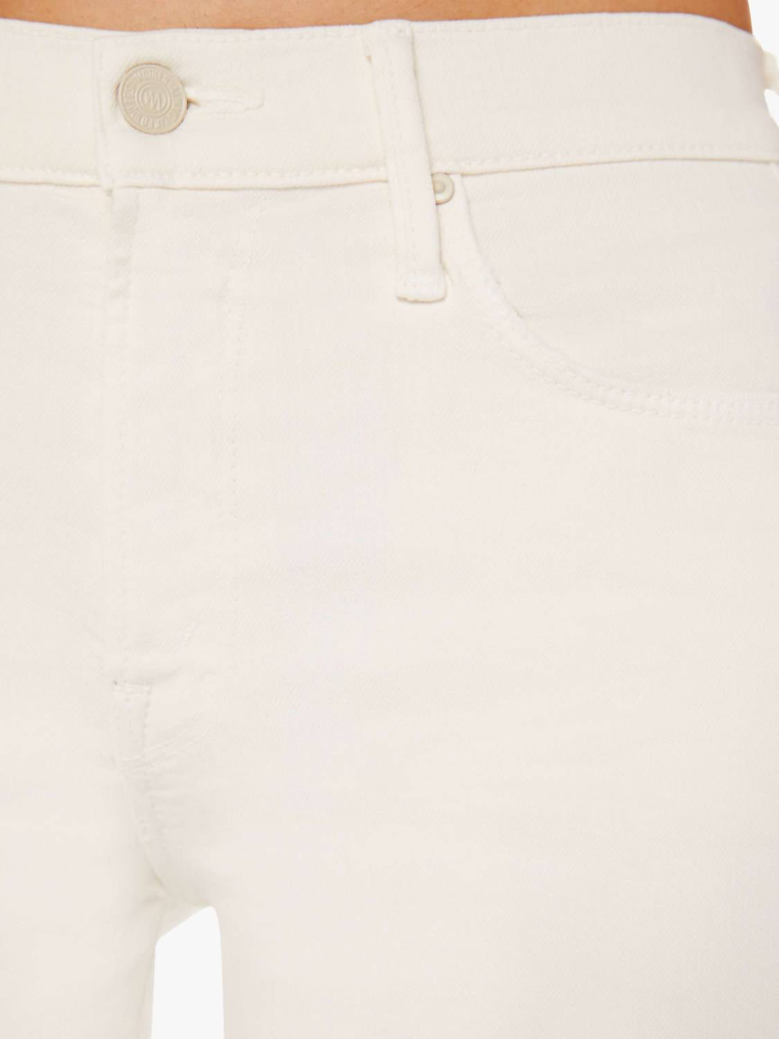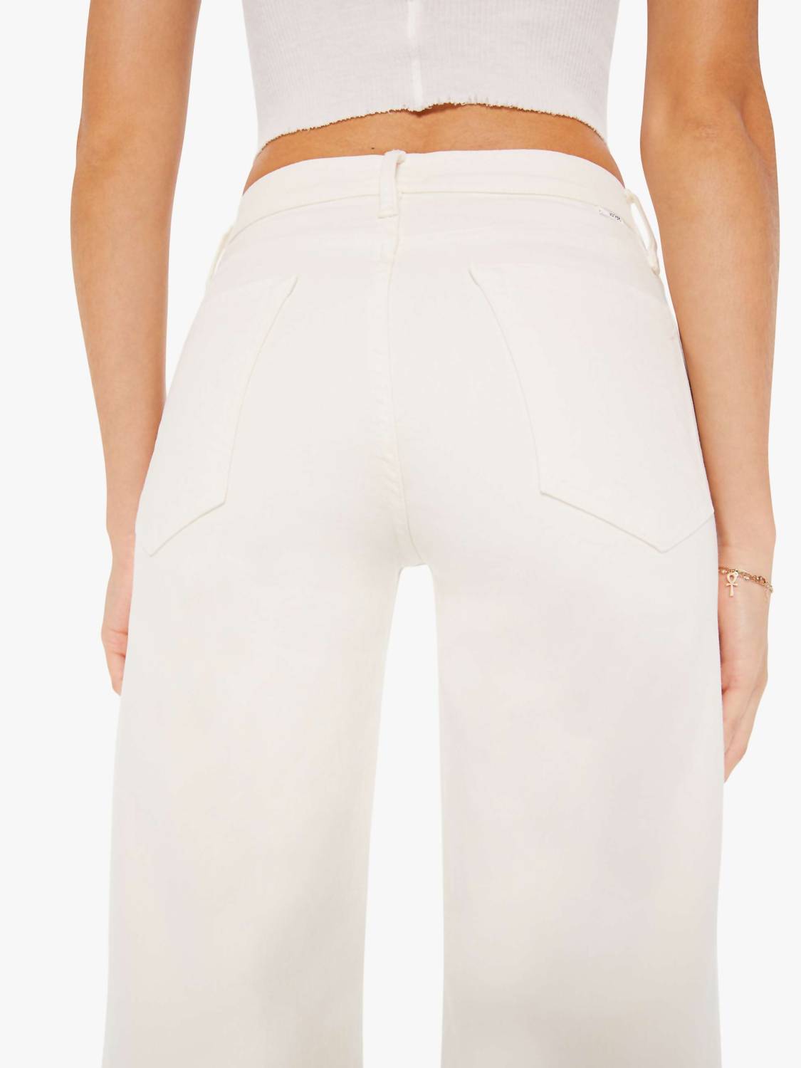 Pair these wide leg jeans with mules, slides or your favorite strappy sandals. Meet the Twister Skimp Jeans in Cream Puffs by Mother, a chic addition to your wardrobe with a relaxed, high-rise silhouette. Boasting a 31-inch inseam and a 26.5-inch leg opening, these wide-leg pants offer a comfortable fit with their cotton blend of 94% cotton, 4% polyester, and 2% elastane. Made in Los Angeles, these jeans feature a zip closure and are designed for easy care with machine wash instructions.