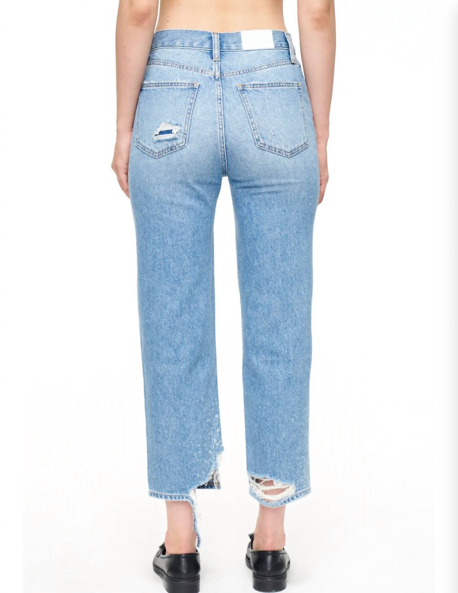 Introducing the Cassie Crop Jeans by PISTOLA, offering a high-rise fit and relaxed, straight-leg silhouette in a trendy Tiki Vintage color. Crafted from 100% cotton, these solid, imported jeans are cropped to hit above the ankle, featuring a 26" inseam and a comfortable 12" rise. Designed with a button closure and functional pockets, they provide both style and utility. Care instructions recommend machine washing for easy maintenance.