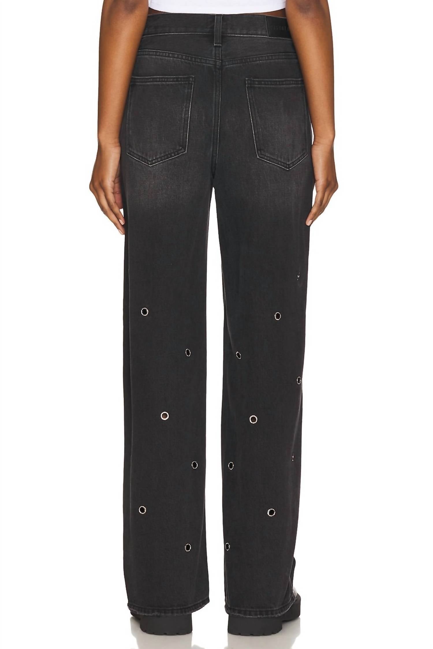 Tuck your favorite tee into these high-waist jeans for a more casual-cool feel. Introducing PISTOLA's Hendrix High Rise Baggy Jeans, a dazzling choice in Glamour that will elevate your wardrobe. These women's jeans boast a high-rise waist and straight leg design, complete with a zip fly and button closure for secure wear. Crafted from non-stretch cotton adorned with polka dot rhinestone-embellished rivets, they provide a chic, structured fit that softens over time. Designed for spring concert occasions, care for these jeans with a machine wash.