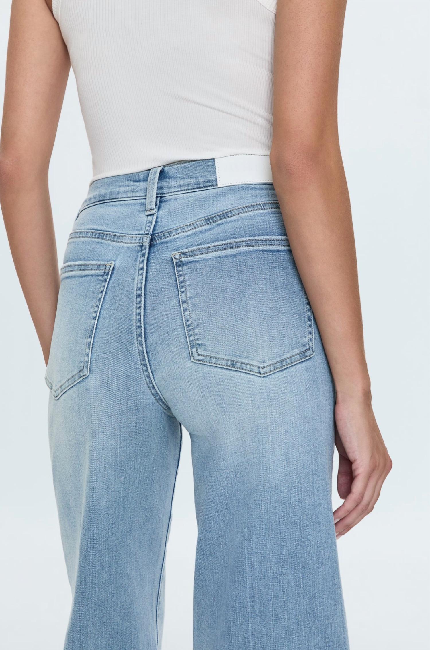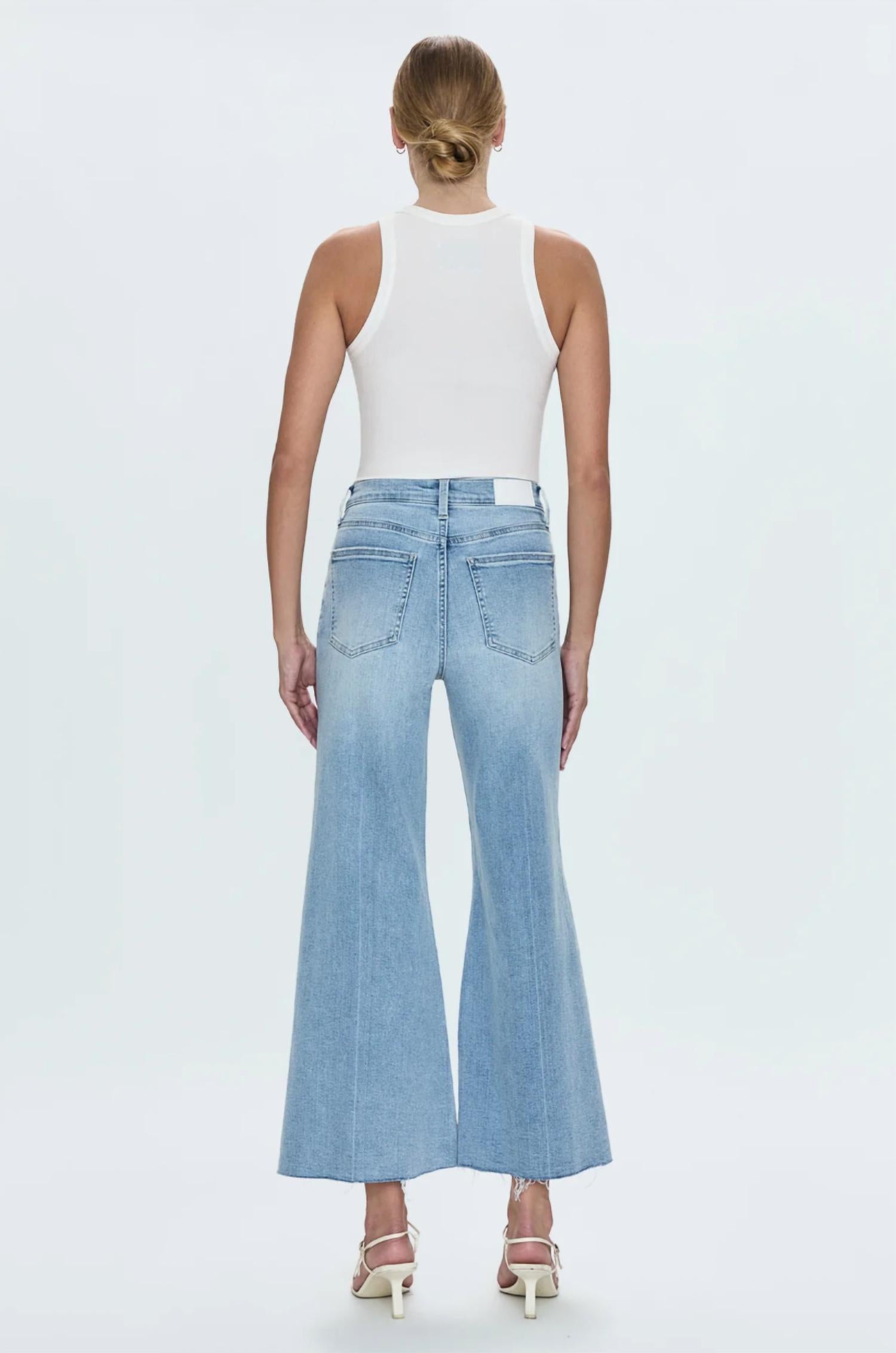 A flattering silhouette that's suprisingly versatile. Unveil your inner fashionista with Pistola's Izzy Mid Rise Wide Jean in the Strive colorway, designed for women who adore streetwear flair. Sporting a slim top block and exaggerated wide-leg silhouette, these jeans add a kick flare at the hem for a bold look. Crafted from a stretch indigo denim, the composition includes 75.5% cotton, 13% rayon, 10% polyester, and 1.5% polyurethane. Closure: Button closure. Care: Wash cold. Perfect for concerts or 4th of July celebrations, these jeans are a summer staple.
