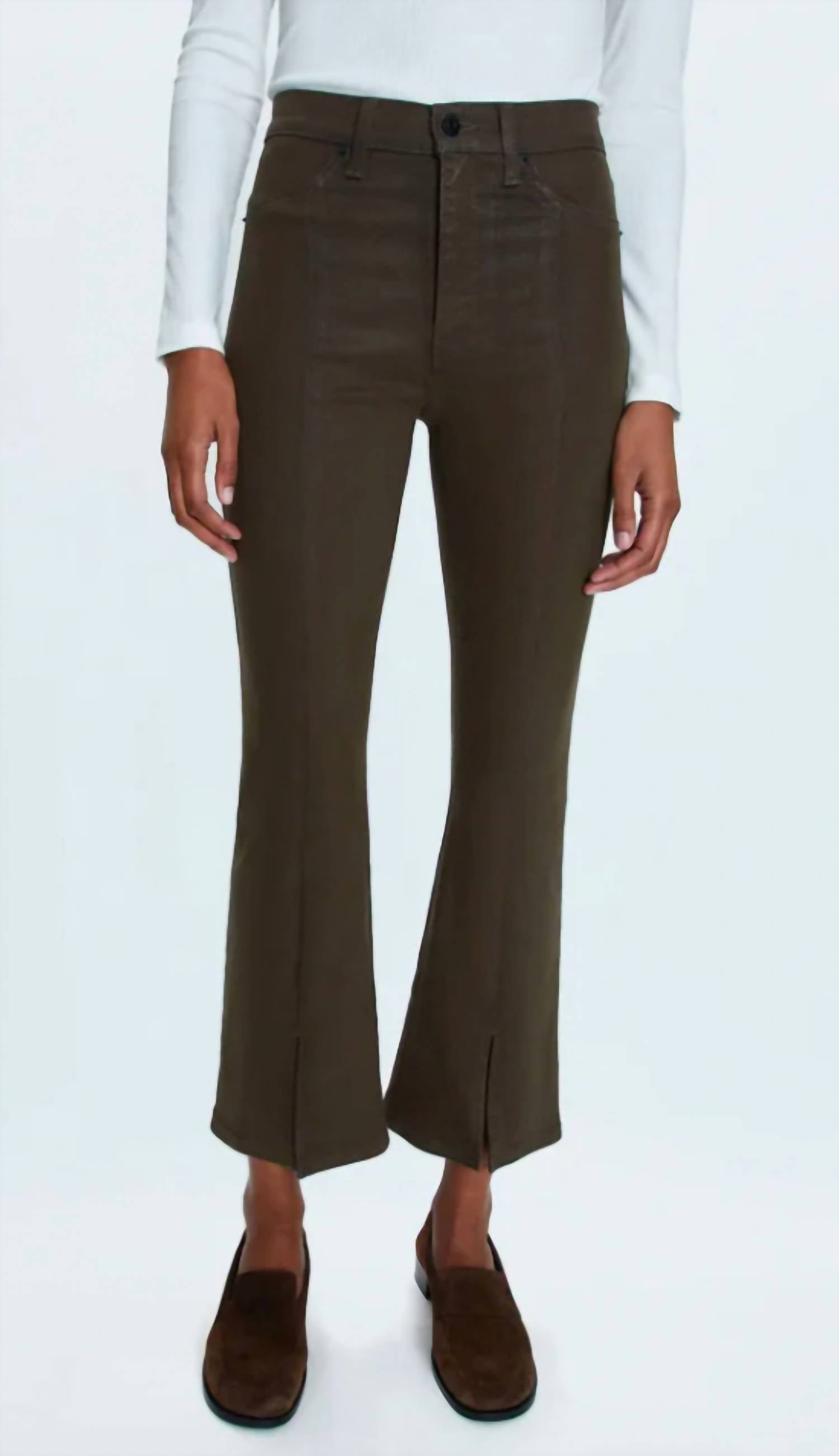 The best selling bootcut silhouette with a high rise waist and cropped ankle hem with a clean finish. Crafted from a super stretch coated denim fabrication, and offered in a natural warm brown colorway.