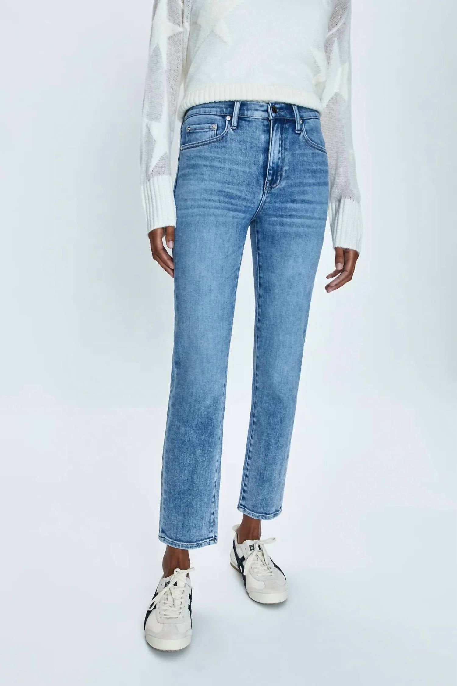 This classic straight leg jean has a perfect fit and goes with just about everything. The Madi High Rise Modern Slim Jeans by PISTOLA bring a contemporary twist to the classic skinny fit with a roomier slim leg and a straight leg style. Made in Silver Lake, a true blue denim with vintage-inspired fading, these jeans are crafted from a blend of 95% Cotton, 4% Elasterell, and 1% Spandex for a flattering stretch fit. Designed for women, they feature a high rise of 10.5 inches and a 29-inch inseam, finished with a button closure and zip fly.