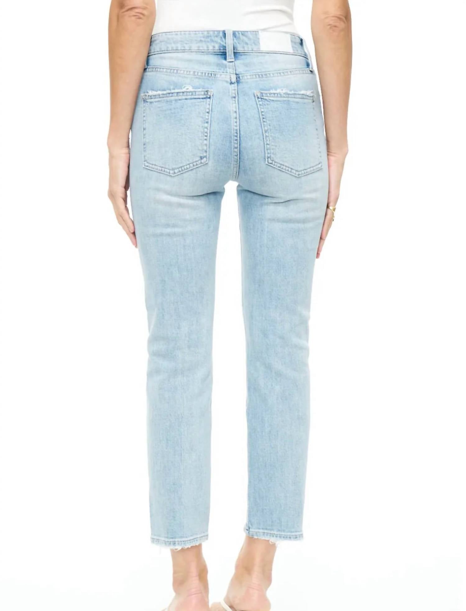 Comfortable and stylish, we love this cropped jean for all of the obvious reasons. Discover the Monroe High Rise Cigarette Crop Jeans by PISTOLA, a chic embodiment of comfort and style in color LENORA. These high-rise jeans feature a slim fit, skinny leg, and hit just above the ankle with a subtle distressed detail and light fraying at the hems. Crafted from a cotton blend with 72% Cotton, 27% Rayon, and 1% Spandex, they provide a comfort stretch fit. Closure: Button closure. Care: Machine wash.