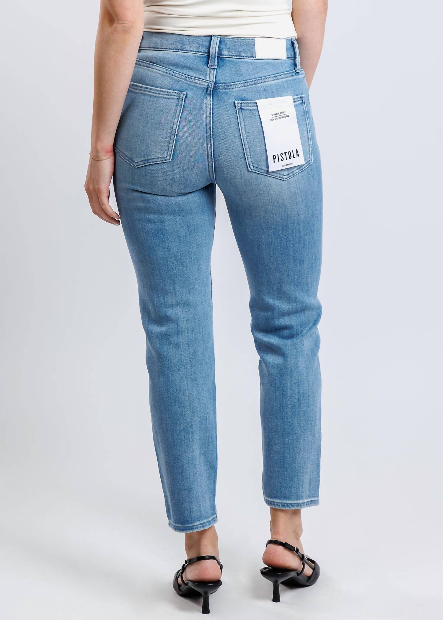 High-waist is here to stay and we especially love this style. Introducing the Pistola Monroe Crop Jeans in Hill, your new go-to denim staple. Featuring a high-rise waist and slim-straight cigarette leg, these jeans offer a flattering silhouette perfect for any outfit. Composed of super-stretch denim with 95% Cotton, 4% Elasterell, and 1% Spandex, they promise comfort and flexibility for all-day wear. With a 26.5" inseam, classic 5-pocket design, and button closure, these jeans ensure style and functionality. Care instructions: Machine wash and tumble dry. Model is wearing size 26 (5'6" height, 34" bust, 28.5" waist, 31" hip, 29" inseam).