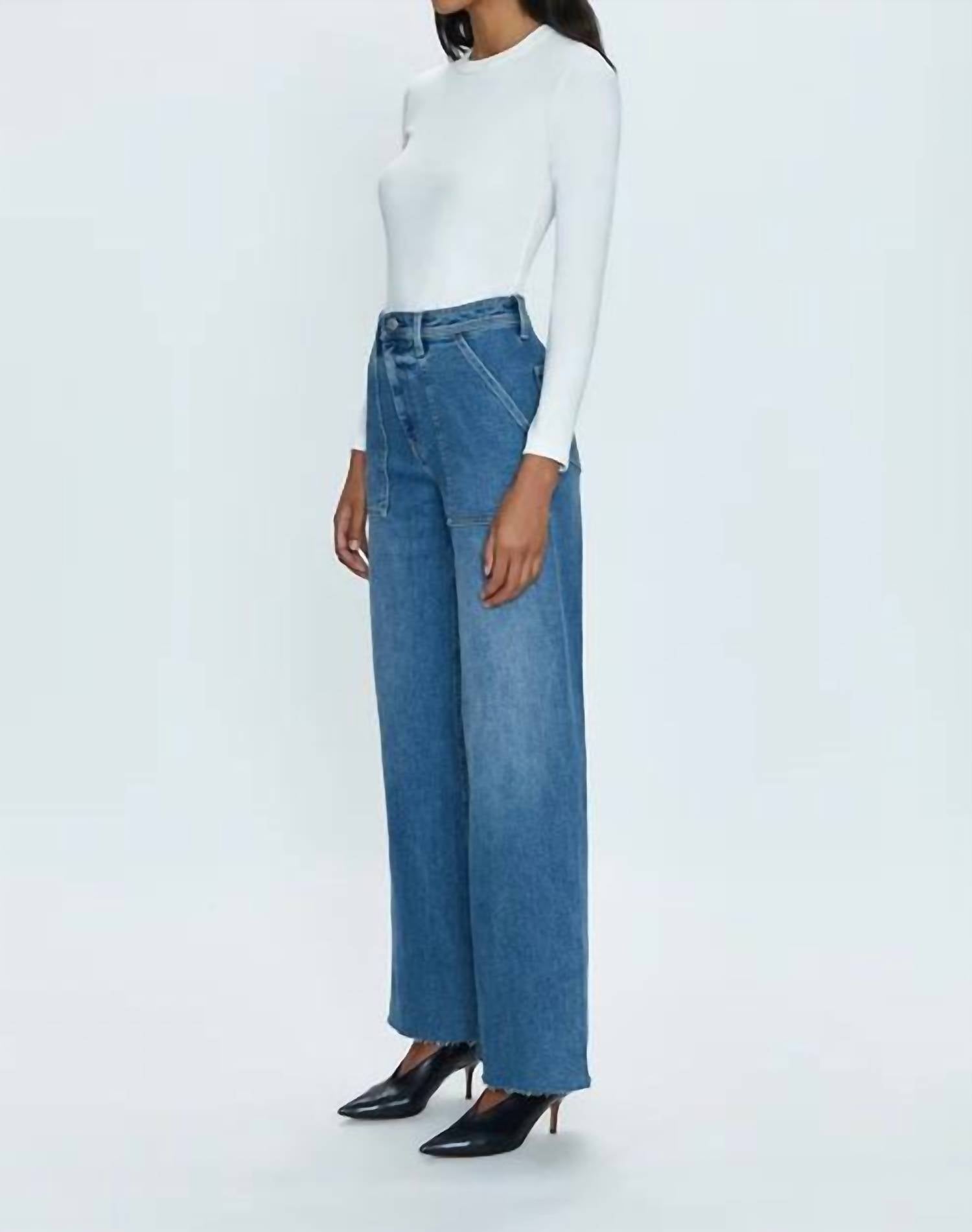 These must-have jeans are fit to perfection. Meet the Penny High Rise Wide Leg by PISTOLA, a stylish choice for women who appreciate comfort and fashion. Crafted from 100% cotton, these pants feature a high-rise design with a straight leg style in a sophisticated Canal color. Equipped with convenient pockets and solid patterning, they secure with a classic button closure. For easy maintenance, simply machine wash as needed.