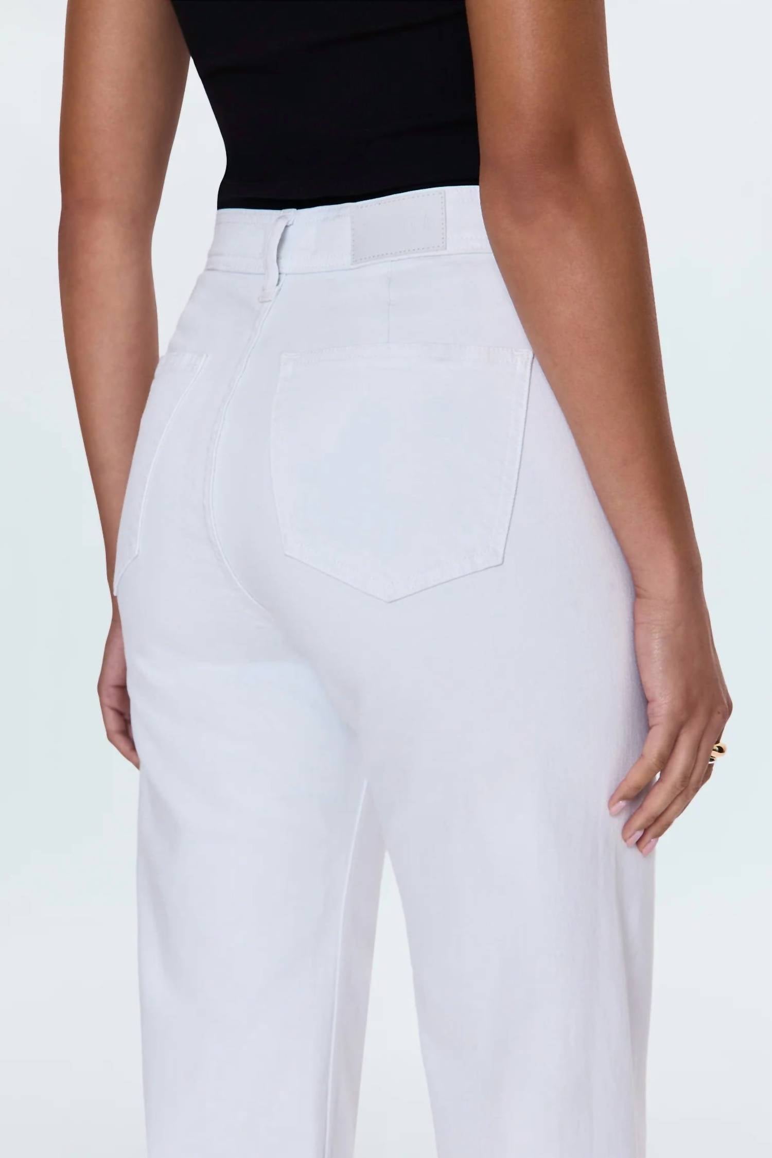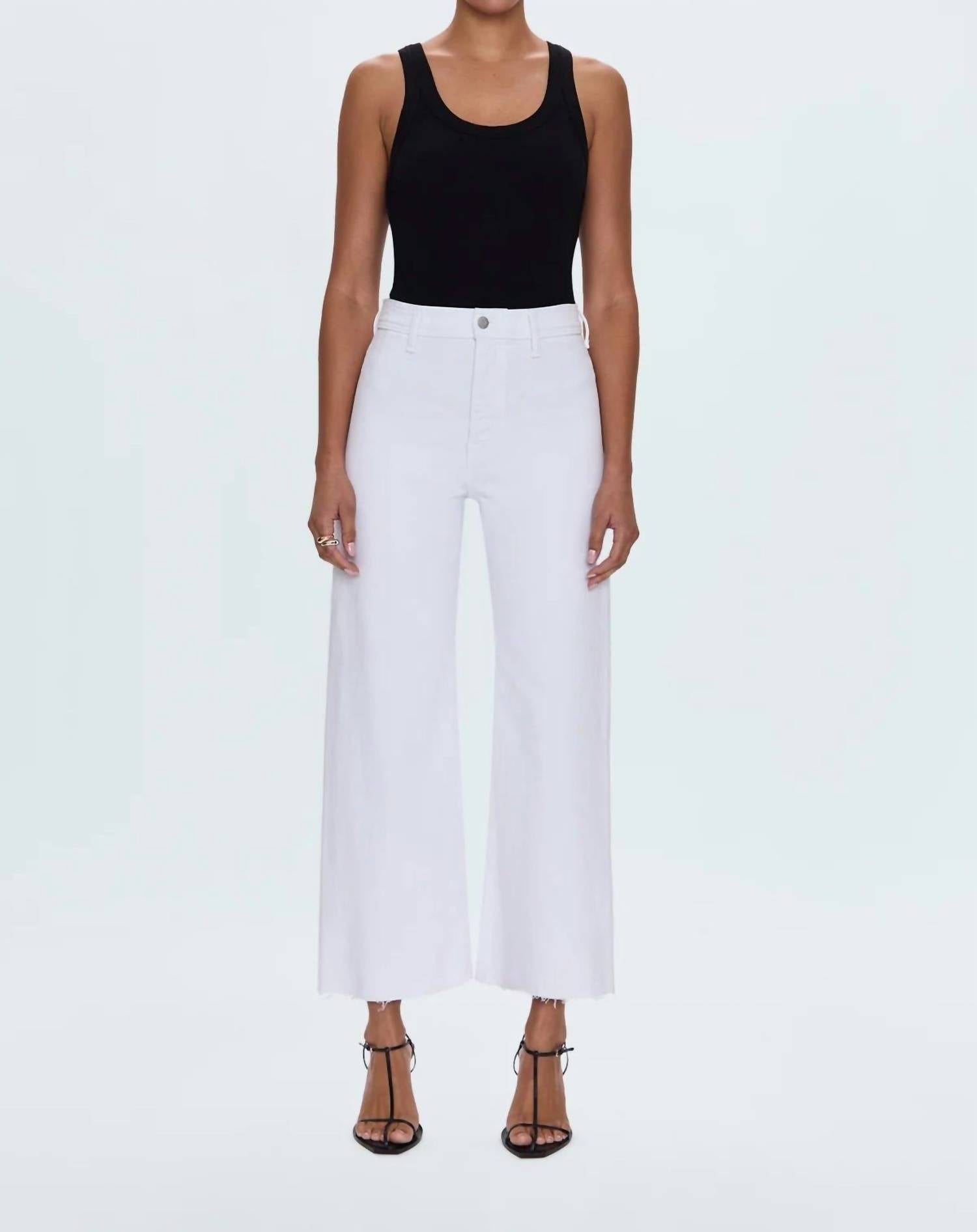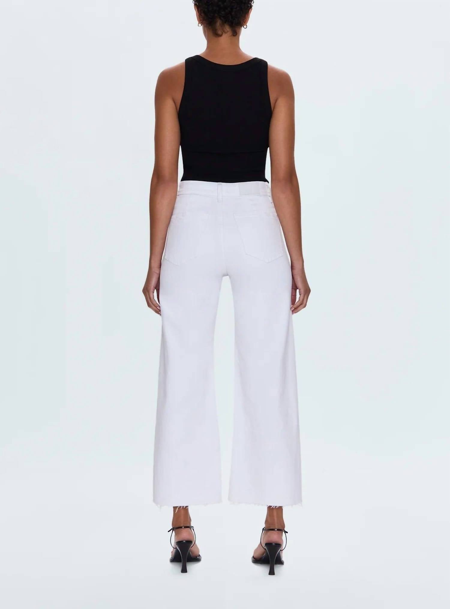 Fit to perfection, we love these high-waist jeans and you will too. The Penny High Rise Wide Leg Crop Jeans by PISTOLA bring effortless style with their high rise waist and relaxed fit. Designed in a solid Blizzard white, these jeans feature a comfortable stretch cotton blend, ensuring a perfect fit with 99% Cotton and 1% Elastane. The wide leg silhouette and cropped, ankle-length hemline are complemented by a button closure, offering timeless appeal. Proudly imported, these jeans measure a 12" rise, 27" inseam, and 21" leg opening, and are easy to care for with a machine wash instruction.