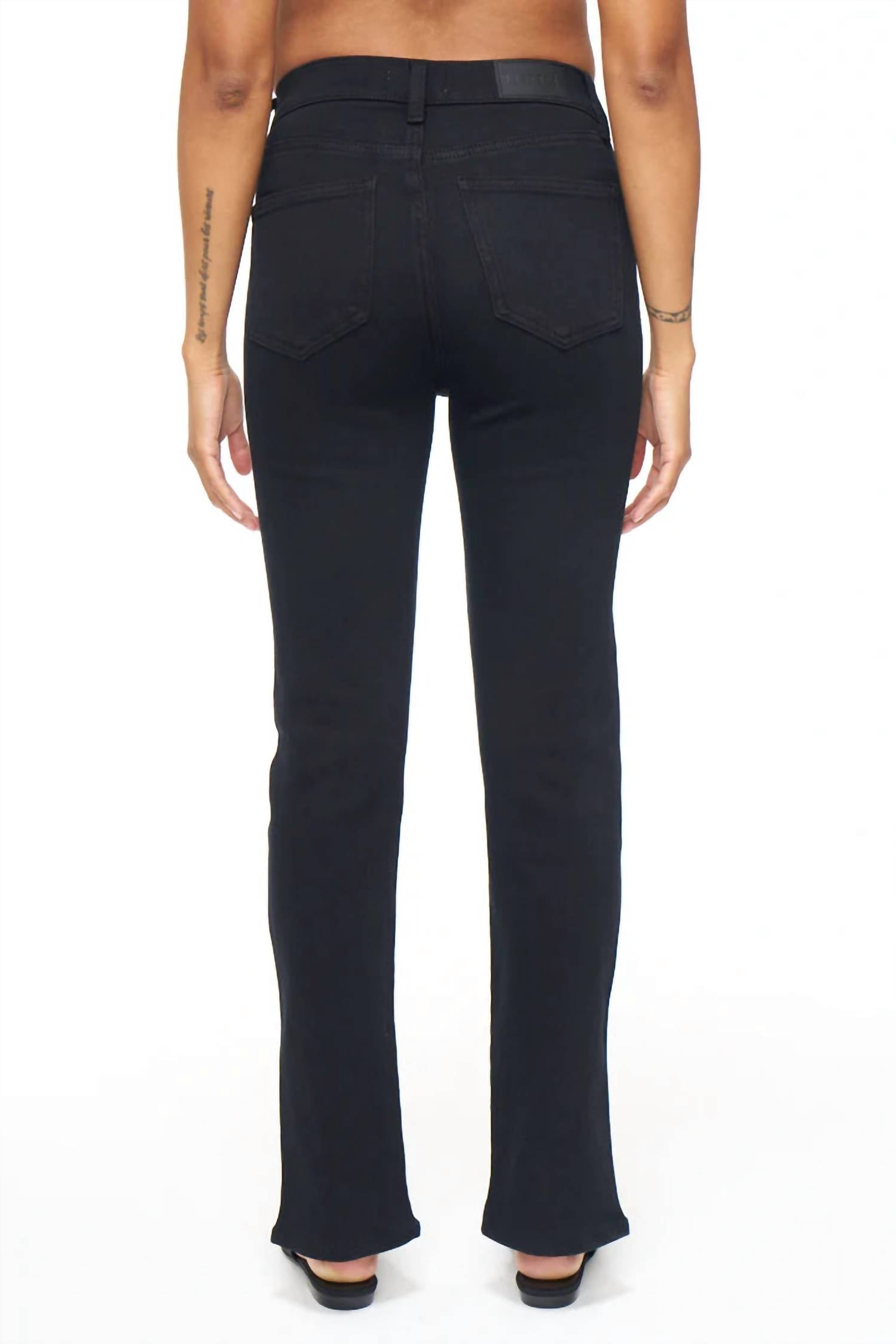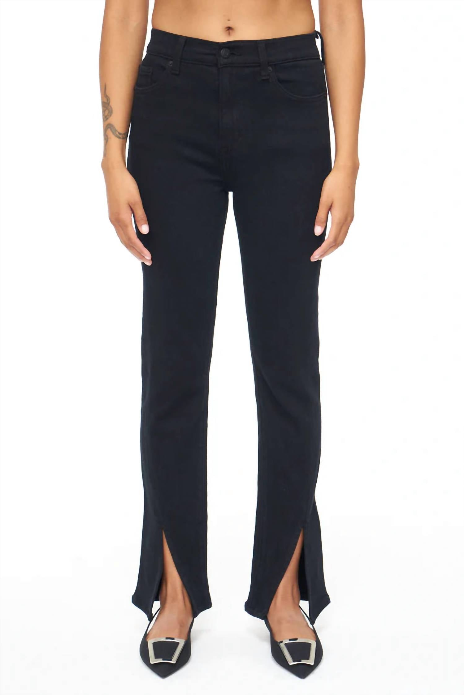 Tuck your favorite tee into these high-waist jeans for a more casual-cool feel. Experience the refined style of the Teagan High Rise Vented Straight Jean by PISTOLA in Dark Vinyl. These jeans feature a flattering high-rise fit with a chic slit detail at each ankle, perfect for showcasing your favorite footwear. Made from a comfortable cotton blend of 95% Cotton, 4% Elasterell, and 1% Spandex, they promise both stretch and durability. Boasting a rise of 11", inseam of 31", and a leg opening of 13", these jeans are imported and designed with a convenient button closure. Care for them is simple with a machine wash routine.