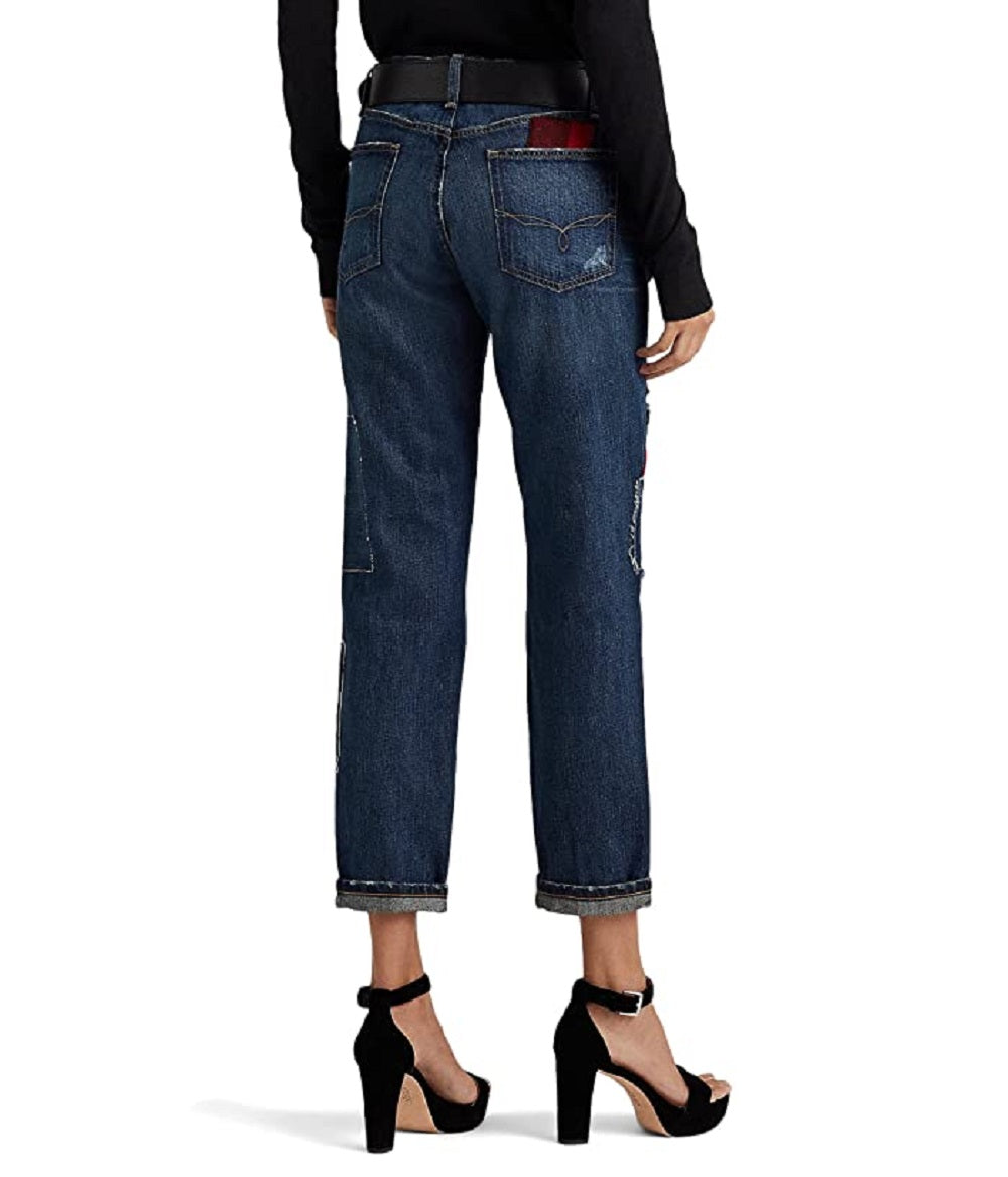 Ralph Lauren Women's Patchwork Relaxed Tapered Ankle Jeans Blue Size 12