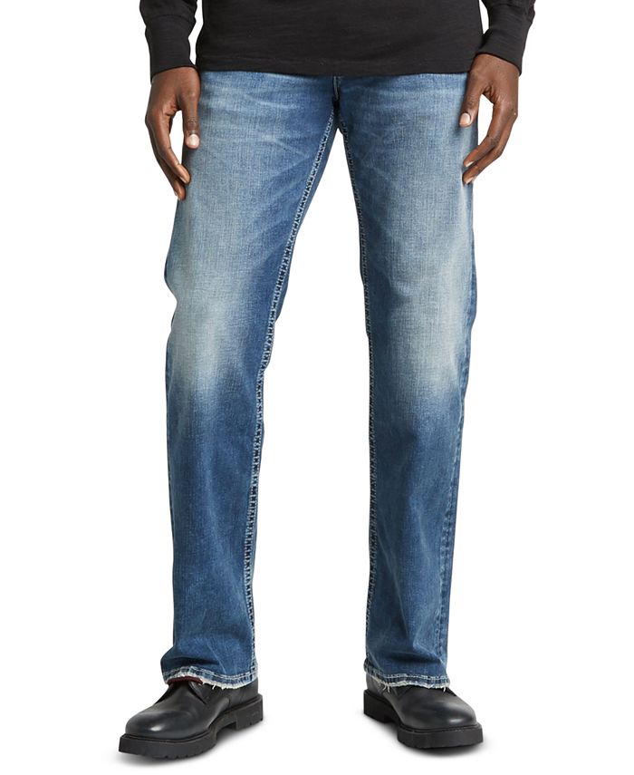 When you want to feel comfortable and look good in equal measure| reach for these relaxed-fit jeans from Silver Jeans Co.| which sit just below the waist and come equipped with a roomy straight leg for unbeatable cozy style.| Relaxed fit | Sits below waist | Zip fly with button closure