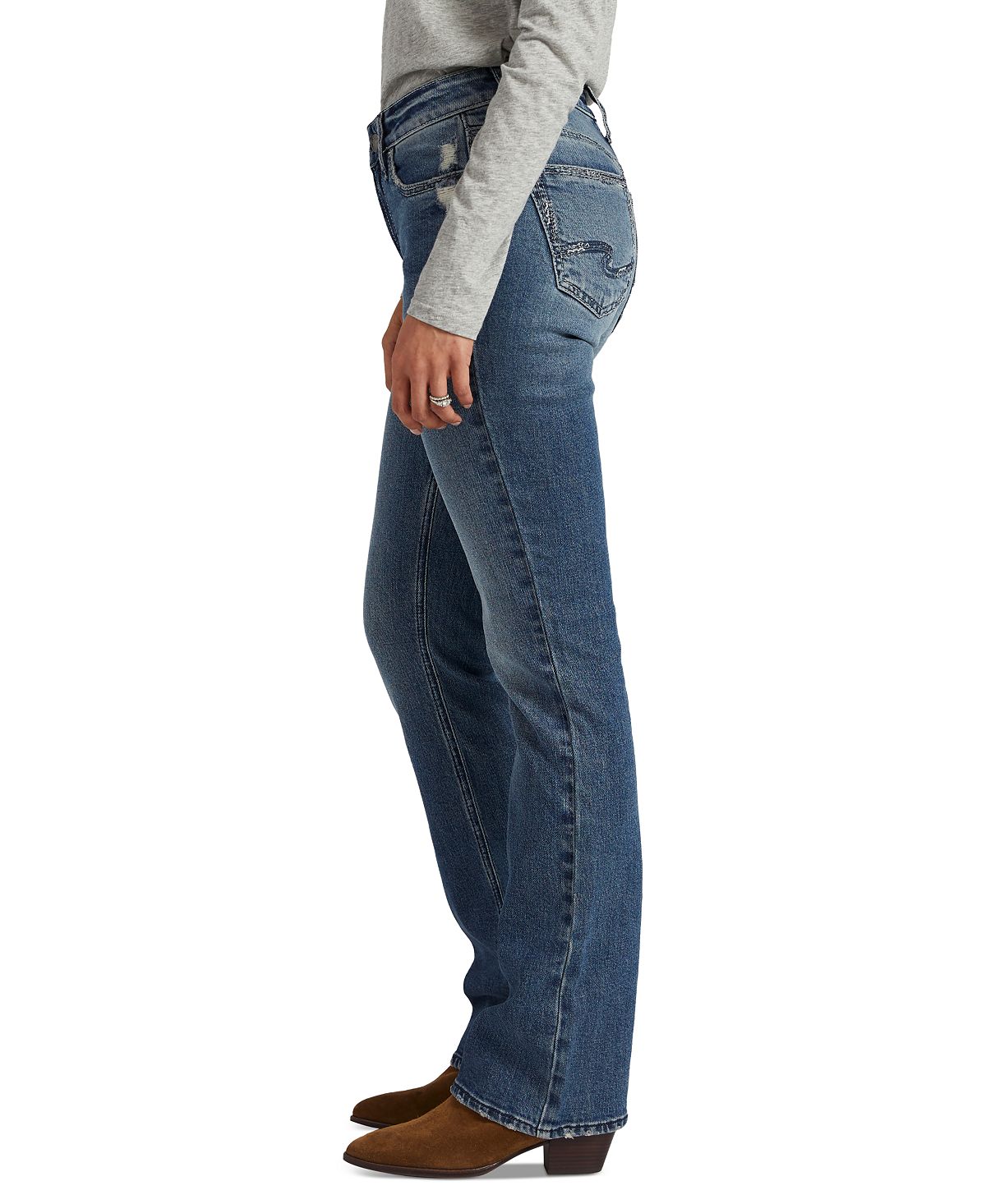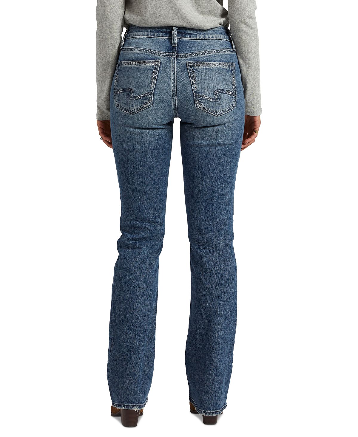 Designed with a contoured waistband to prevent gapping| Silver Jeans Co.'s Suki jeans feature a modern mid rise and a slim bootcut silhouette.| Approx. inseam; 31 (R); 33 (L); 35 (XL)| Mid rise; approx. 9-1/4| Zipper and button closure; belt loops| Designed with a contoured waistband to prevent gapping