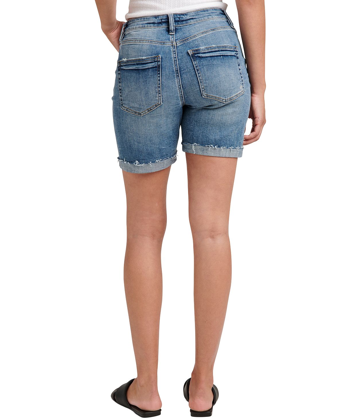 The name says it all—these long denim shorts from Silver Jeans Co. are a sure thing. They're designed with a high rise and universally flattering fit that works for a variety of body types.| Approx. inseam; 6-1/2| Rise; approx. 10-7/8| Zipper and button closure at front; belt loops| Power stretch denim with highest stretch and recovery; Trine brand icon embroidered on the back pocket | Cotton/polyester/elastane| Machine washable
