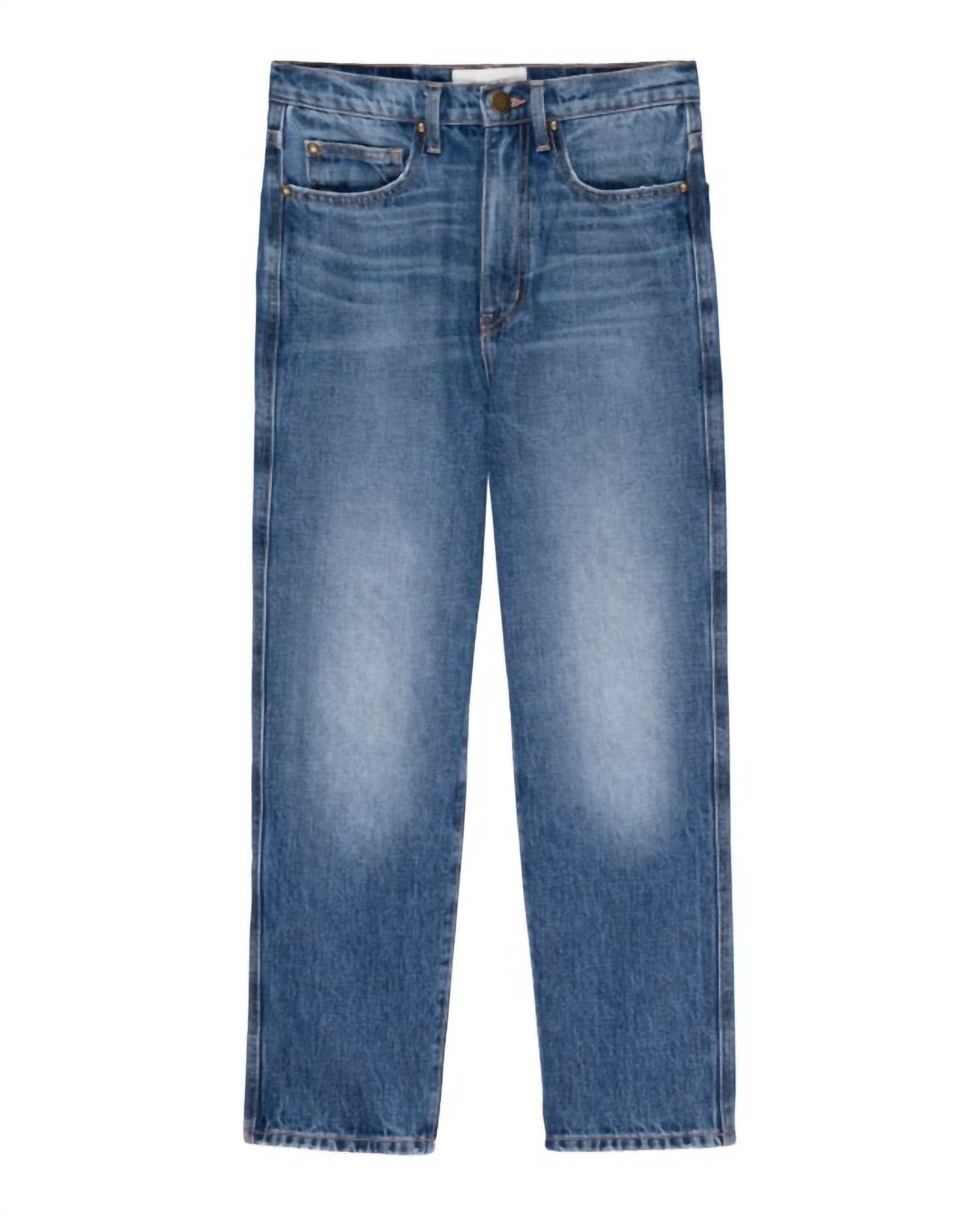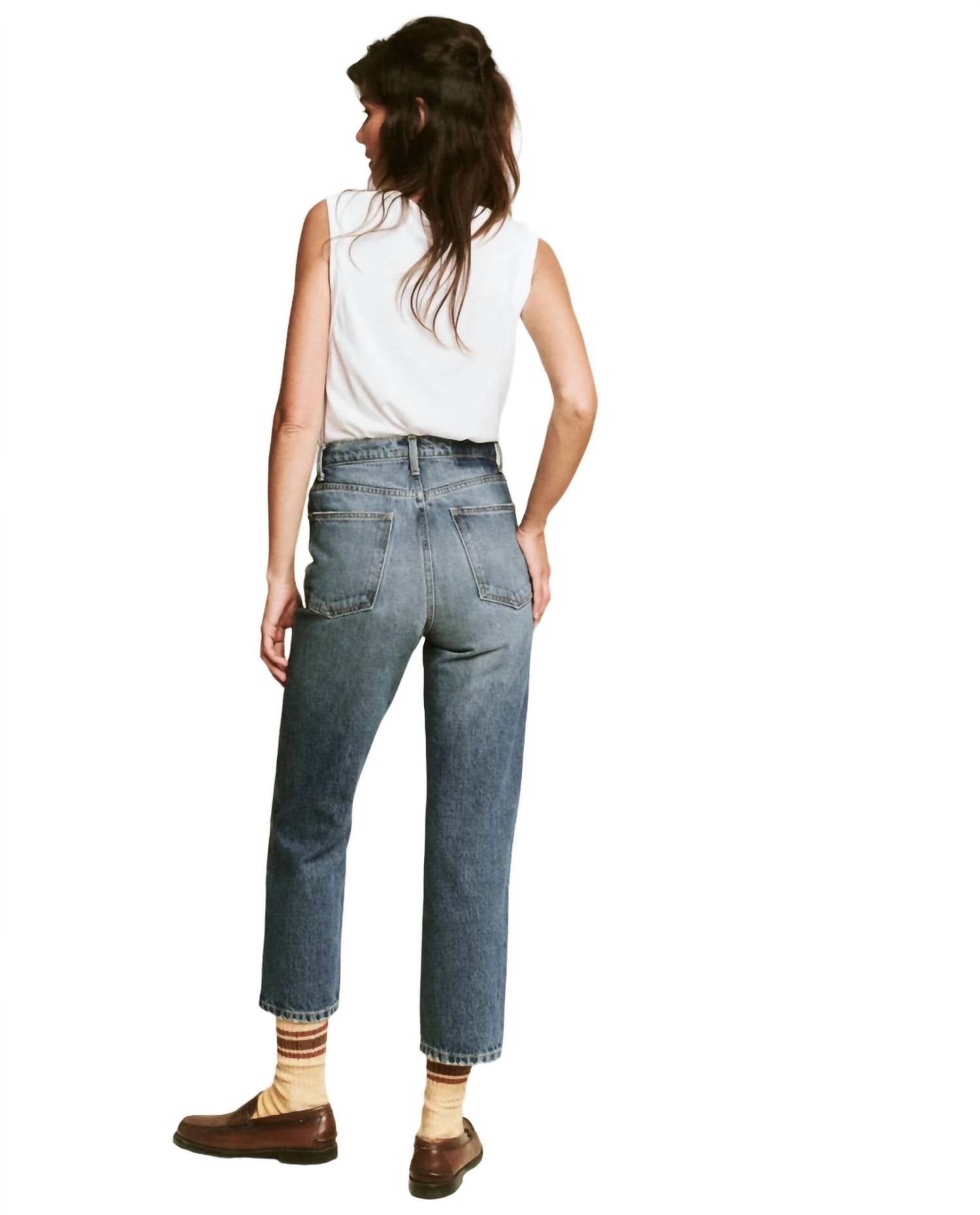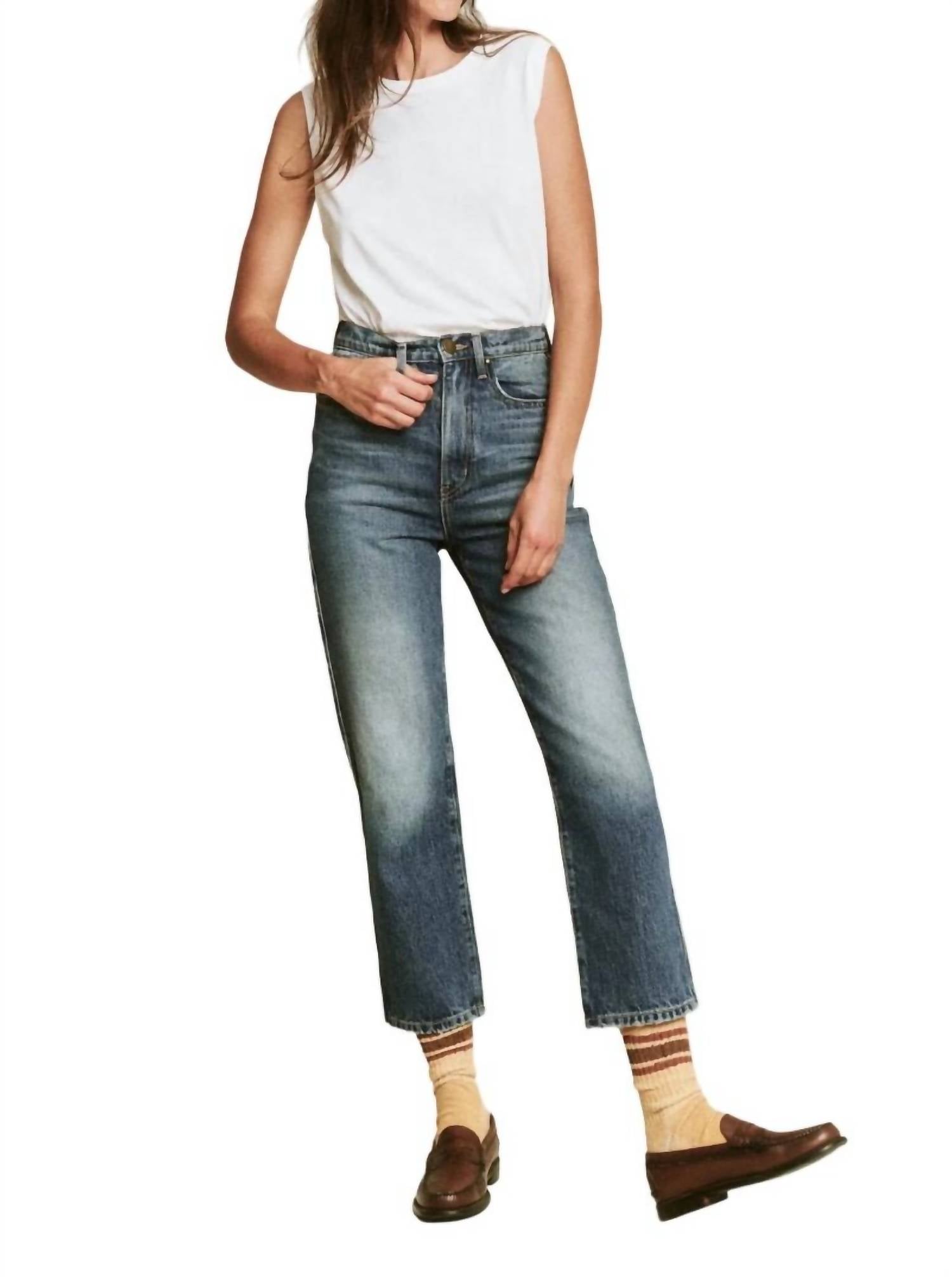 Tuck your favorite tee into these high-waist jeans for a more casual-cool feel.Straight-leg, high-waisted silhouette. Crafted from a rigid denim that’s been washed to a soft medium shade with a touch of fading and distress, this new body features five pocket details and a flattering above-the-ankle length. 100% Cotton. Machine Wash Cold, Tumble Dry Low.
