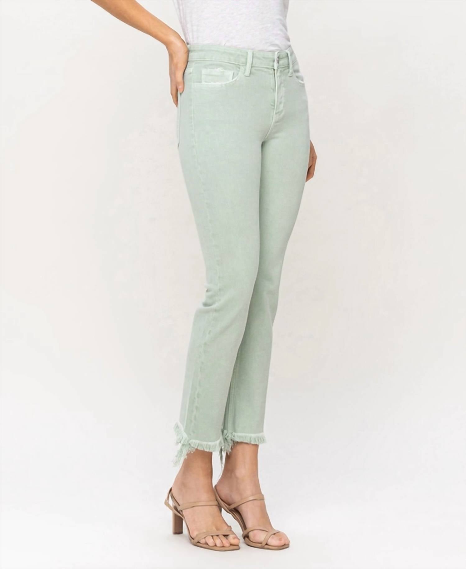 These must-have jeans are fit to perfection. Introducing the Mid Rise Crop Straight Jeans by VERVET BY FLYING MONKEY, a chic addition to any wardrobe in a refreshing mint hue. Crafted from comfortable cotton and designed with a textured pattern, these jeans feature a flattering mid-rise and straight leg style. Closure is secured with a button closure, and the jeans include functional pockets. Care for these jeans with ease—machine wash and tumble dry.