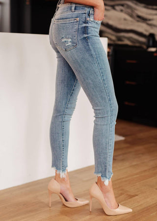 Judy Blue - Women's Mid Rise Vintage Raw Hem Skinny Jeans