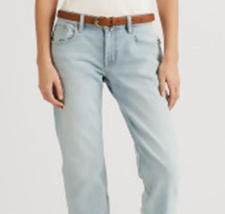 Ralph Lauren Women's Denim Pocketed Straight Leg Button Fly Tie Belt High Waist Jeans Blue Size 18