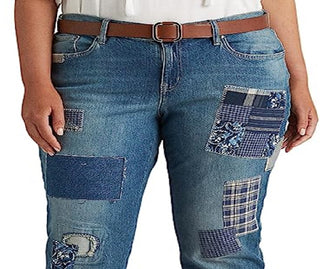 Ralph Lauren Women's Patchwork Relaxed Tapered Jeans Blue Size 14W