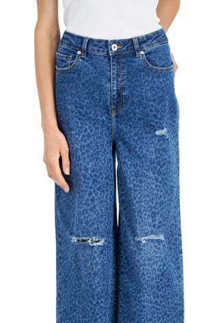 INC International Concepts Women's Animal Print Destructed Wide Leg Jeans Blue Size 6
