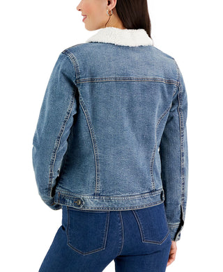 Style & Co Women's Sherpa Collar Jean Jacket Blue Size Medium