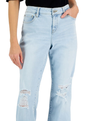 INC International Concepts Women's High Rise Distressed Straight Leg Jeans Blue Size 10