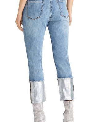 Rachel Rachel Roy Women's Straight-Leg Metallic High Rise Cuffed Jeans Brightblue Size 24