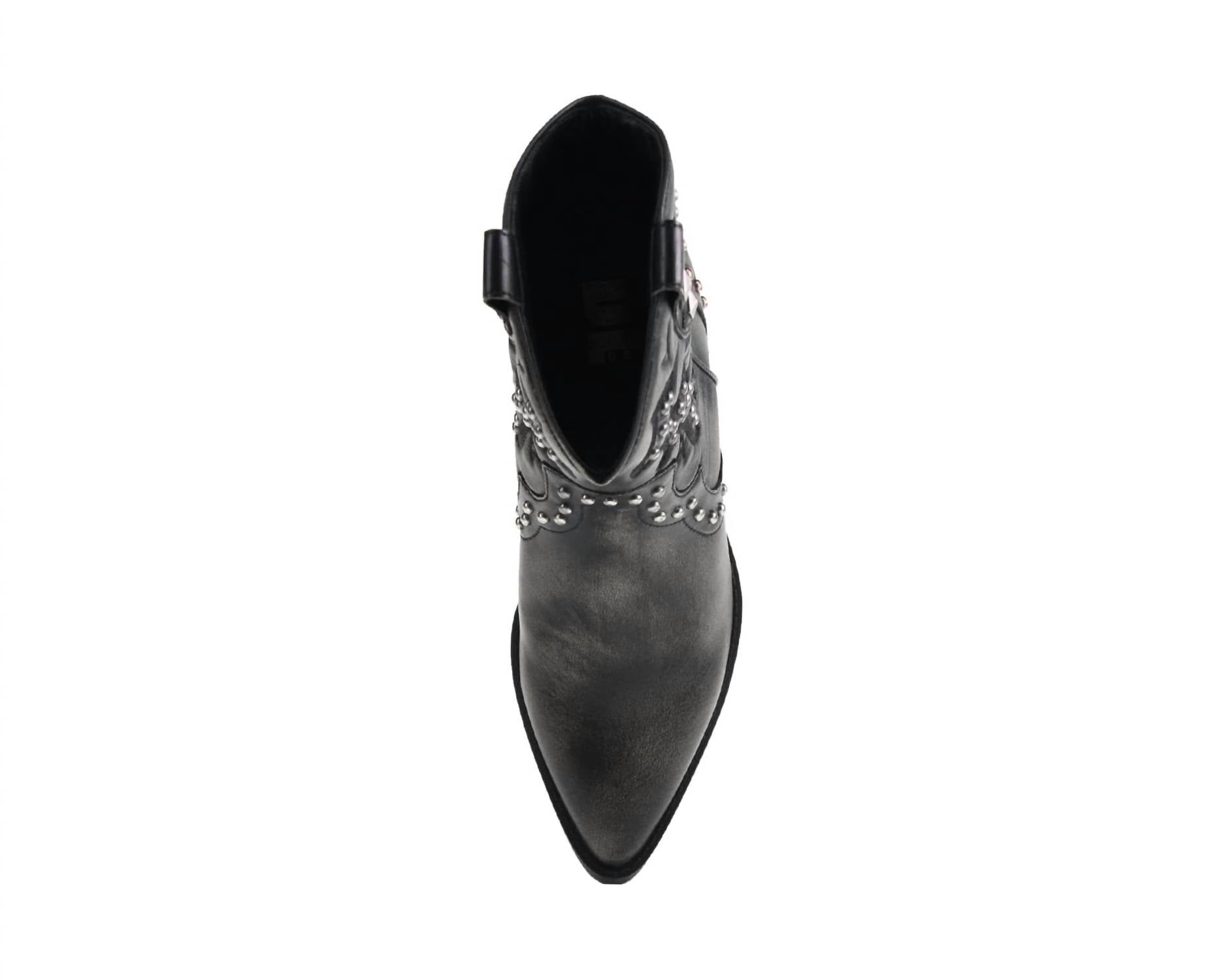 Step into bold style with the Nowhere Western Bootie by Dirty Laundry, a perfect blend of Western charm and edgy grunge. Crafted from sleek black synthetic leather, this bootie features polished studs and a pointed toe for a modern silhouette. The 2 1/4 inch stacked block heel combines style and comfort, while pull tabs ensure easy wear. Ideal for adding a rebellious flair to any outfit, this women's ankle bootie is a statement piece for any wardrobe.