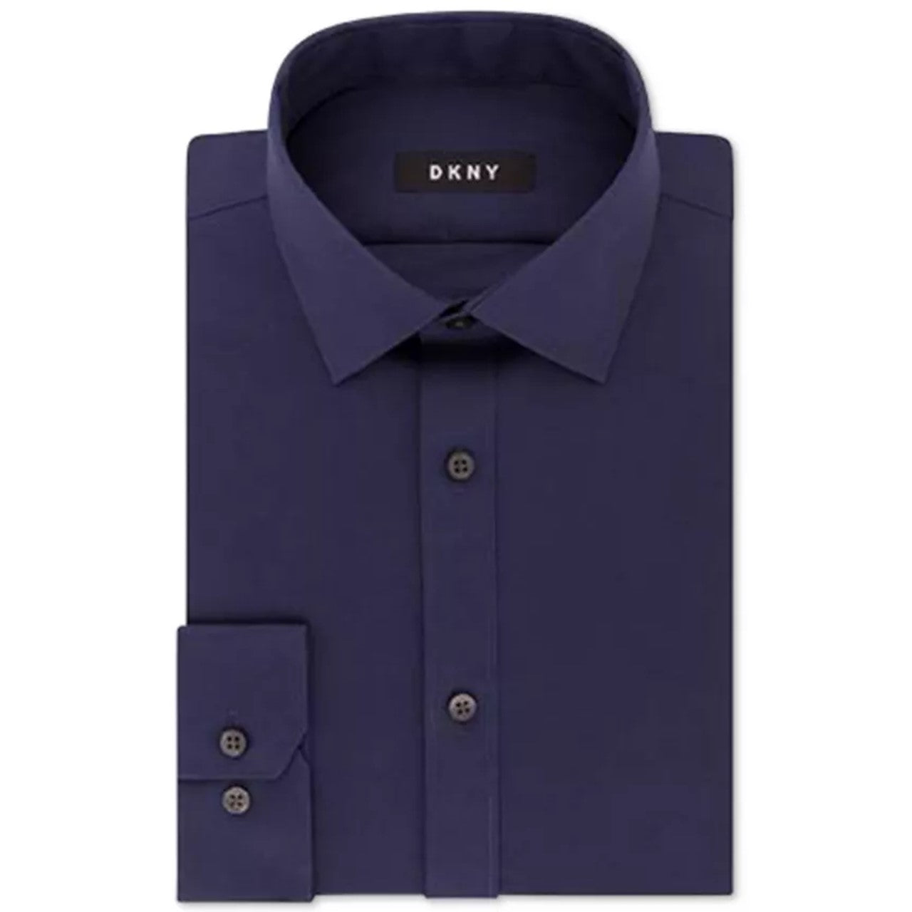 Dkny Men's Slim-Fit Performance Stretch Solid Dress Shirt Blue Size 15 32/33