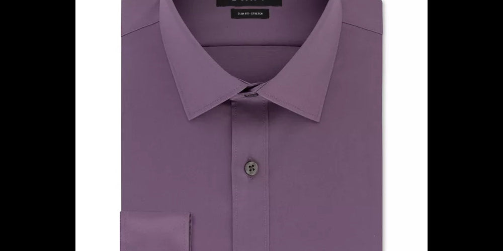 DKNY Men's Slim Fit Stretch Solid Dress Shirt Purple Size XL