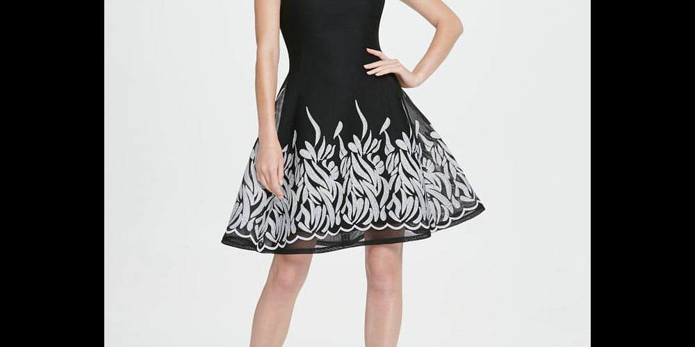DKNY Women's Embroide Mesh Fit & Flare Dress Black Size 16