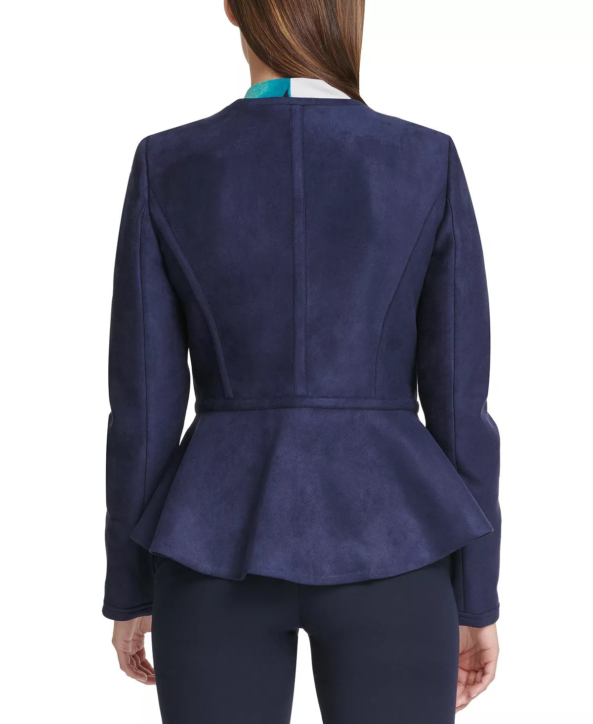 Approx. length; 21|Designed to fit and flatter 5'4 and under frame|Collarless; zip-front closure|Shoulder pads|Lined|Polyester/spandex; lining; polyester