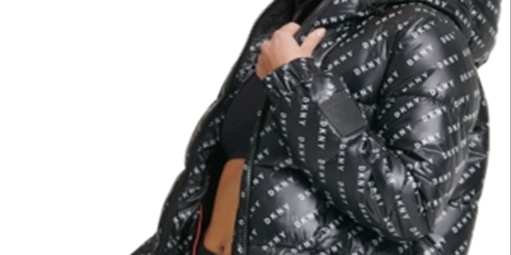 Cozy warmth comes with a signature look in this hooded puffer jacket from Dkny Sport| a sleek piece in a logo print